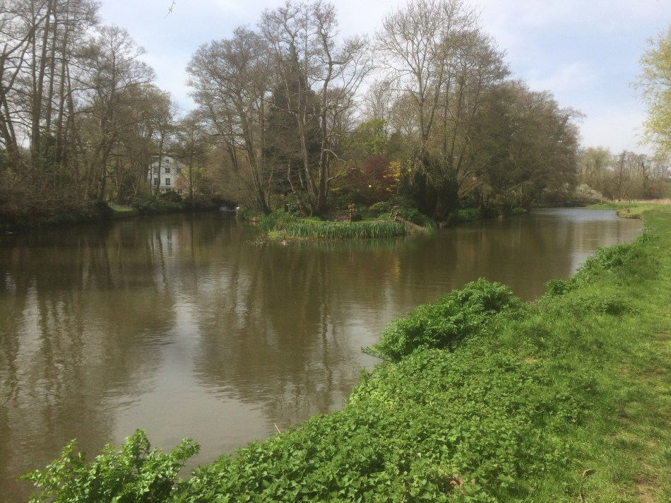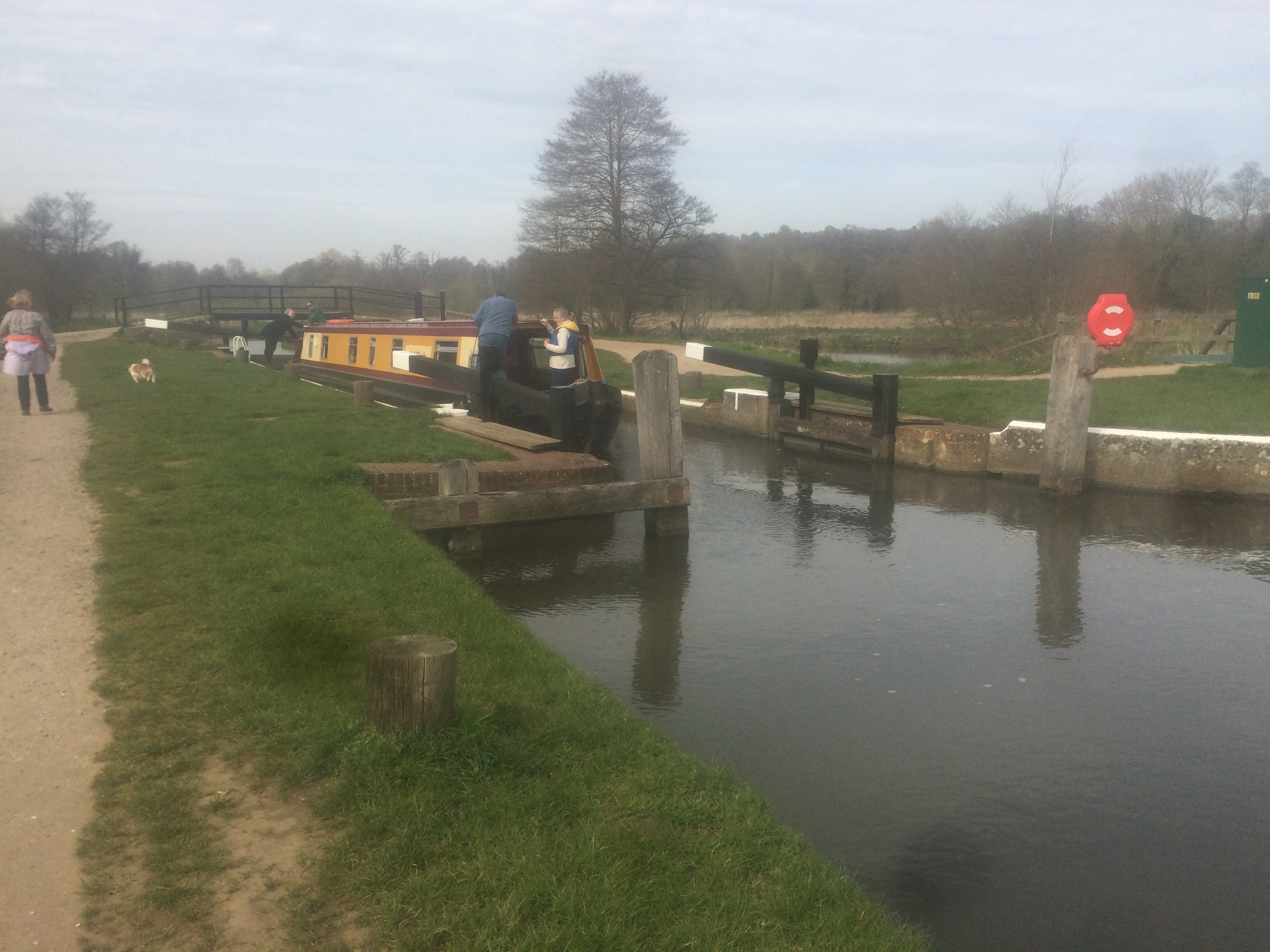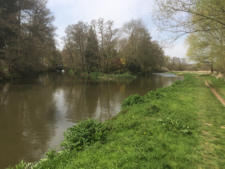 Beautiful day to start the journey after weeks of rain. Walked along the Wey through deepest Surrey to Godalming. Very quiet. Welcome Cappuccino in Guildford. Lovely picnic lunch on the river bank.
