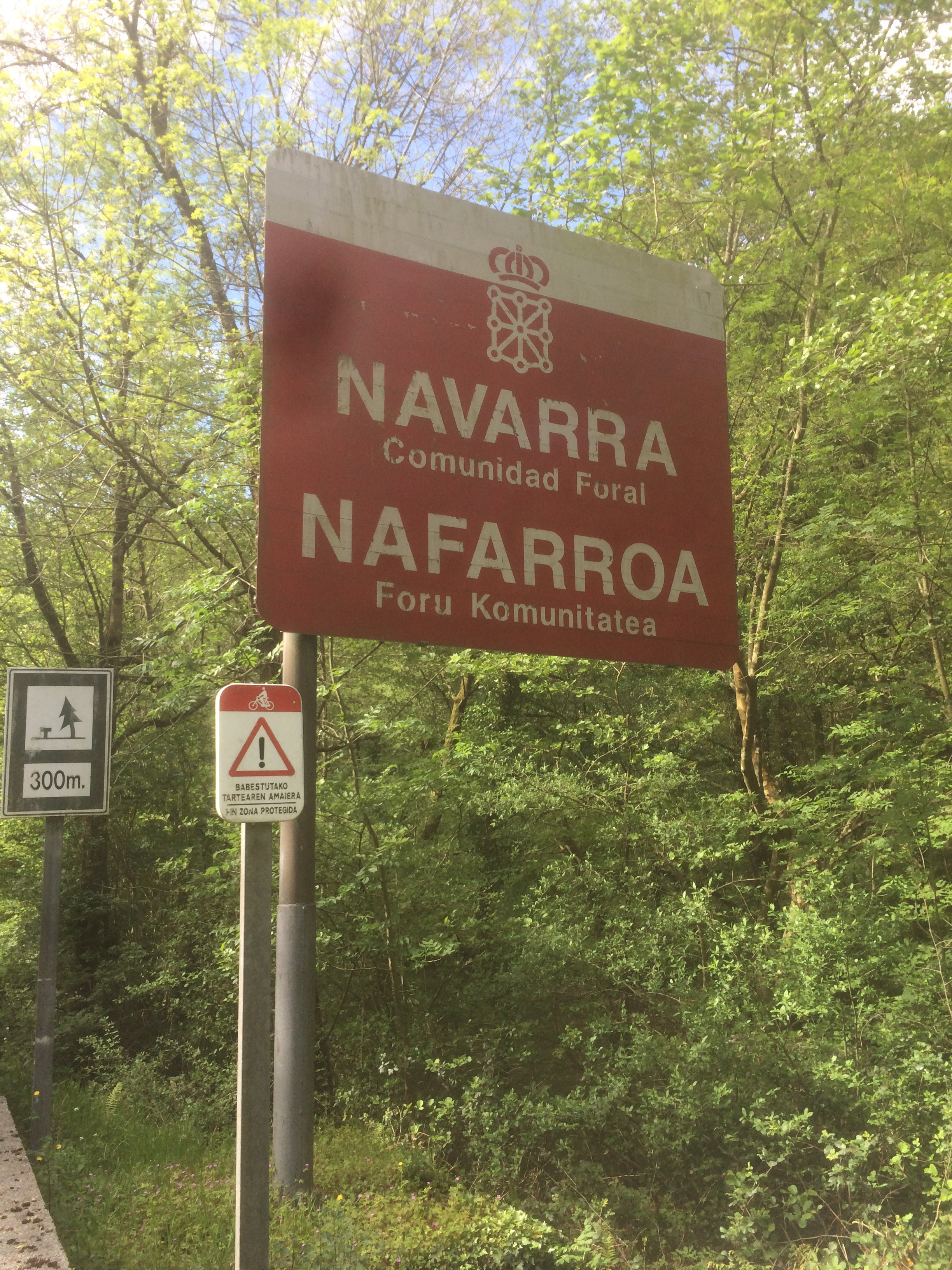 I’ve left behind the pleasant towns and headed into the hills, crossing from the Basque Country into Navarra. Quite a short walk today, 17km, due to limited accommodation options. But I’m in a delightful B&B where the young couple who own the house have been plying me with green tea all afternoon. They have promised me a magnificent dinner at 9pm and breakfast at 8.30.