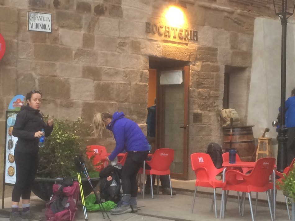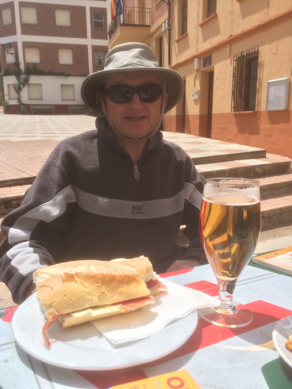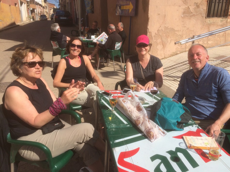 It could be Monday and it could be Azofra but it hardly matters. We are definitely in La Rioja because there are endless vineyards outside and endless Rioja in the bars. The Camino divides between the morning pre sunrise breakfast and walk until early afternoon and then the afternoon spent in the right bar serving the pilgrim menu. But best of all is the joy of seeing so many new friends arriving in the bar. Nothing planned but somehow we all end up together again.