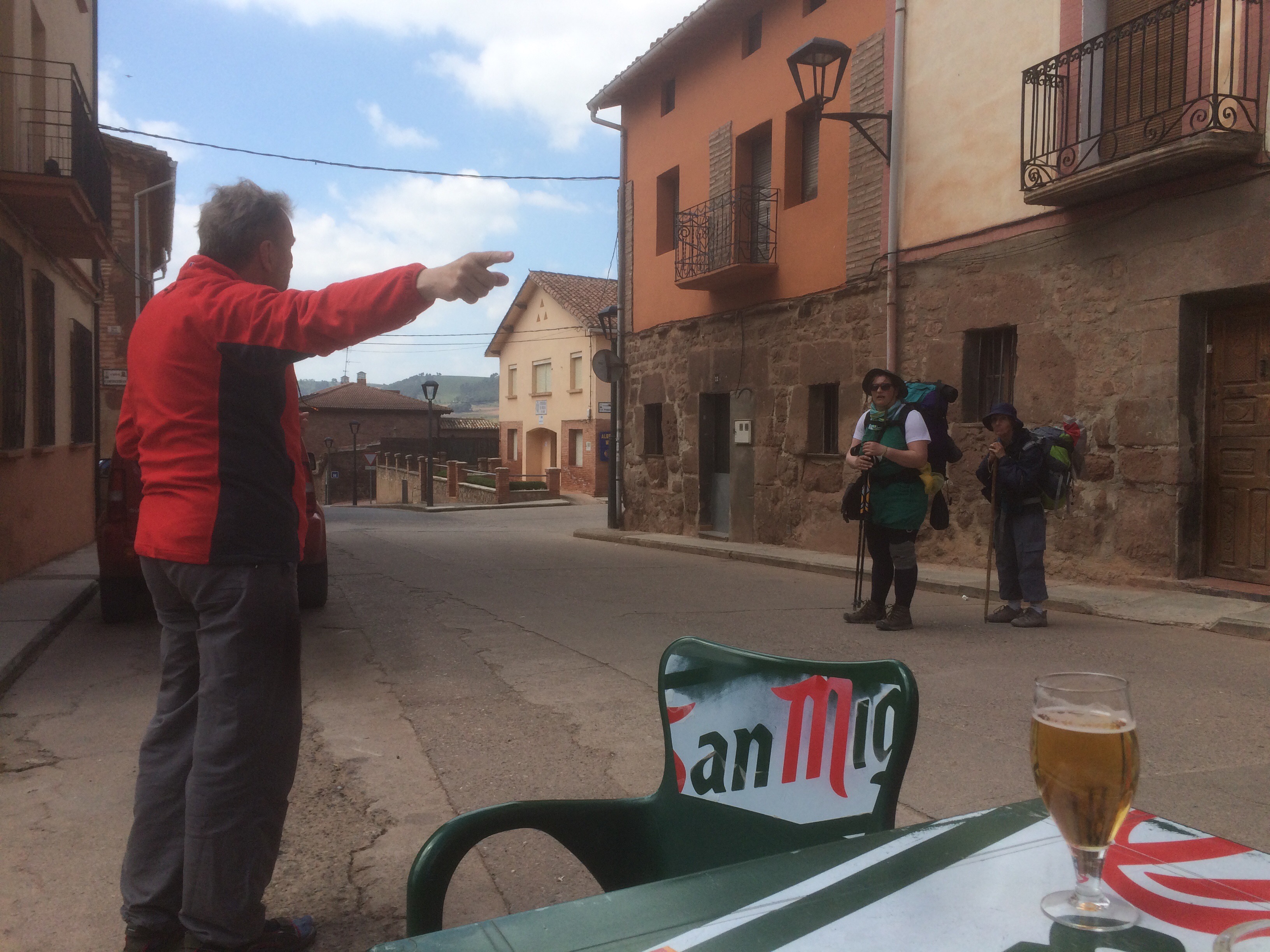 Today, Manfred and I arrived in Azofra (pop 250); hostel 60 beds. While I was getting the beers he was joined by a fellow German girl from Dresden who is just starting her Camino and soon the familiar and welcome faces of the four Canadians, 2 Germans, Brazialian and USA lady had joined us as the tables were pulled together in the road while tractors passed. The Australians from Virgin Australia stopped earlier but will no doubt catch us up soon.