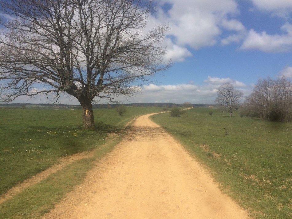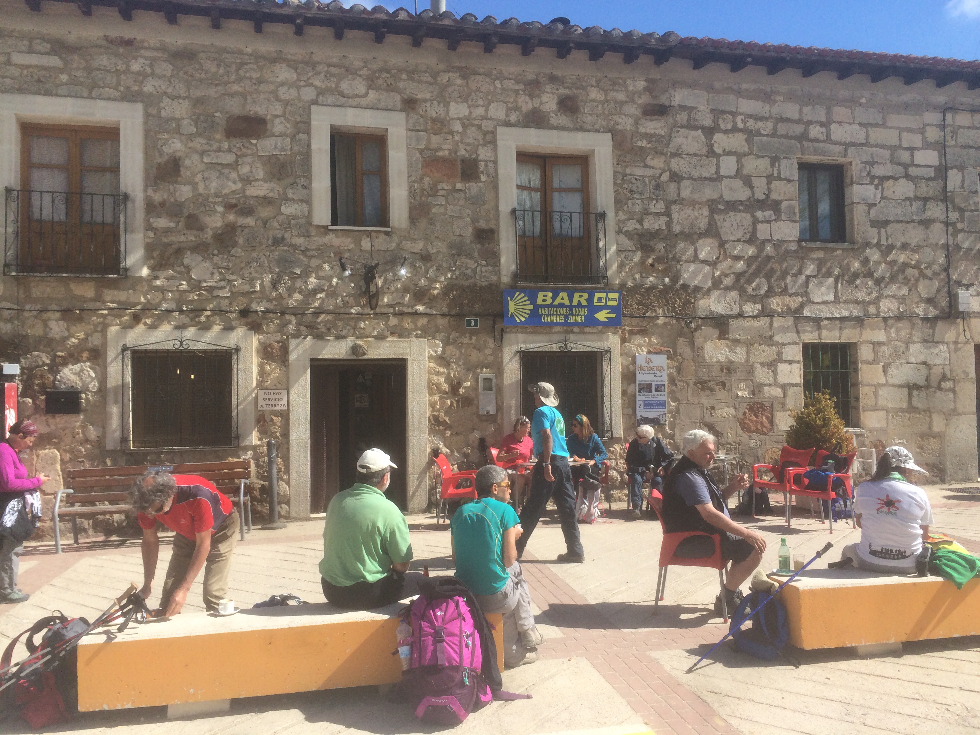 Like every day, today started with coffee and croissant at 7am in the nearest bar, another coffee about 10am. Lunch will be a crusty baguette sandwich and we’ll arrive at our destination about 2pm for a shower and then perhaps a beer with fellow pilgrims. Everyone will eat the dinner pilgrims menu when the restaurant opens.
