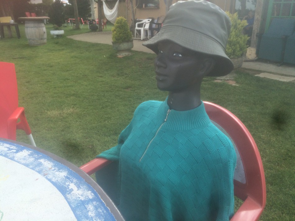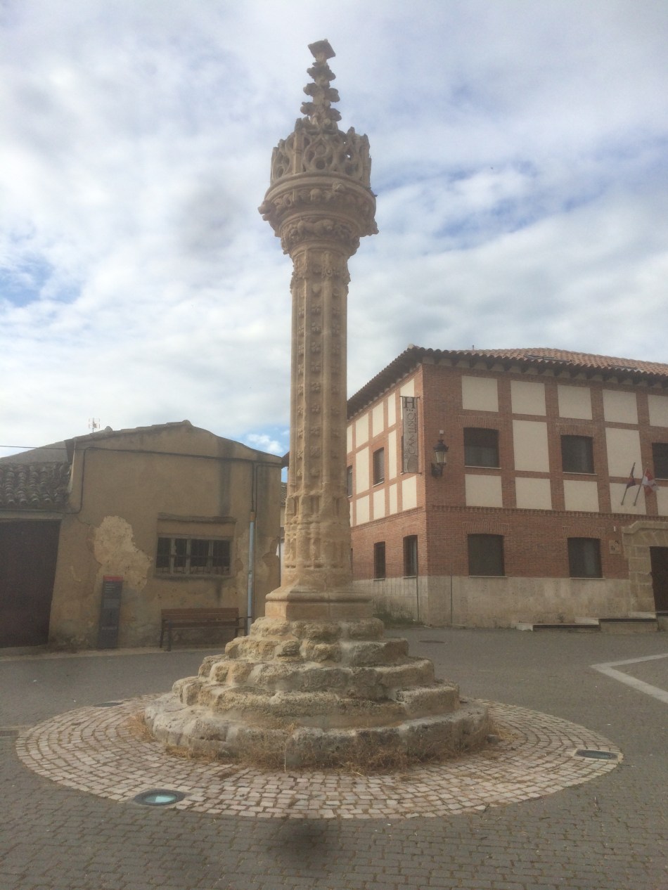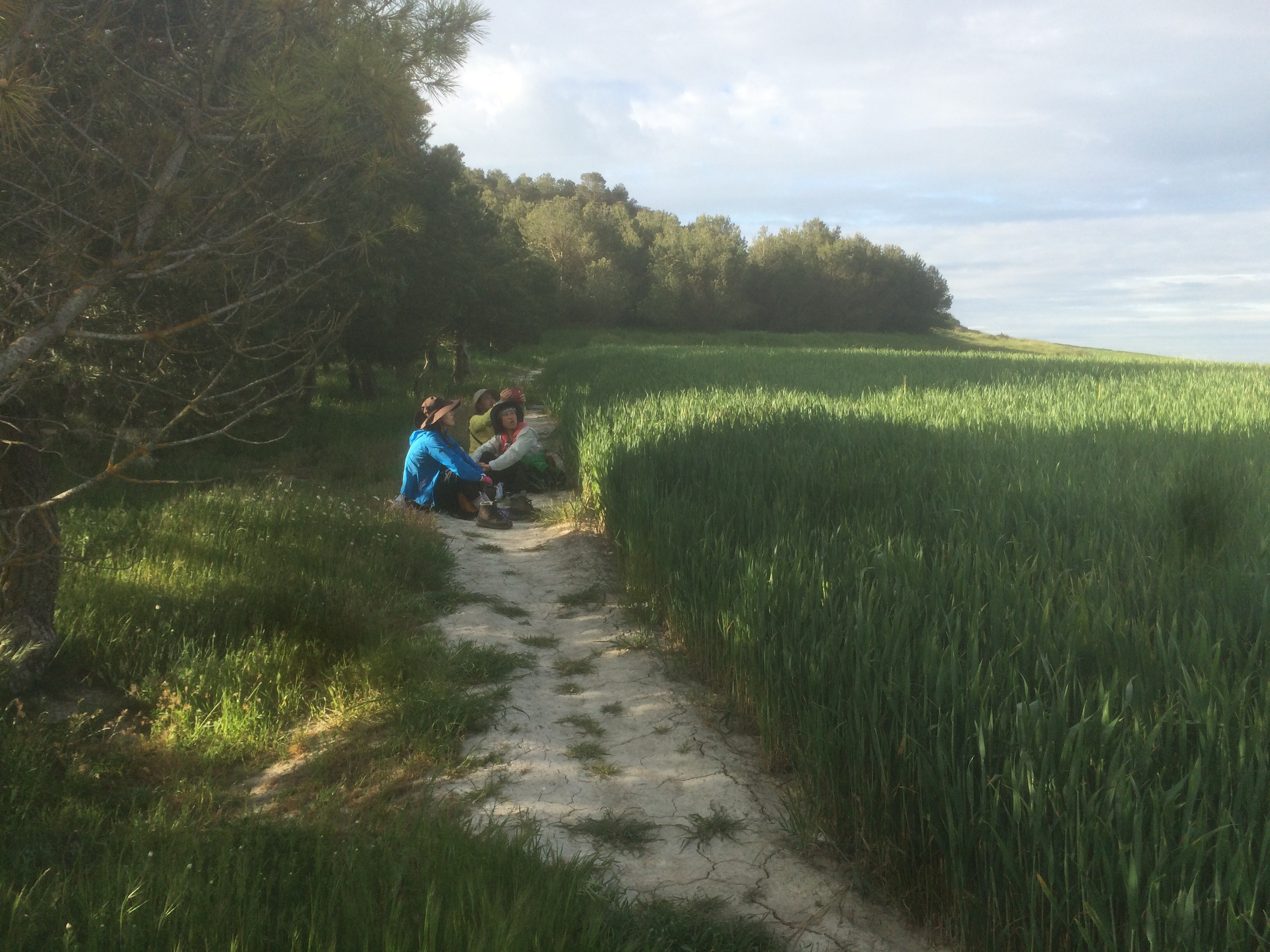 Yesterday’s slog continued for another unremitting 23 Kms to the village of Villarmentero de Campos and the Albergue which is stuck in 1972, Holland or Denmark. The staff seem to be pilgrims who have fallen in love with the place and stayed on as volunteers. Chickens and geese roam the gardens. Apart from the house, you can sleep in little huts, wigwams, caravans… The bar is playing Gregorian Chants of rock anthems and the walls are covered in graffiti.  Some pilgrims have arrived on horses. There is a legend of a young woman walking the Camino with her 3 year old daughter. Well, no surprise, she just arrived. She is at the bar ordering a vegetarian dinner.