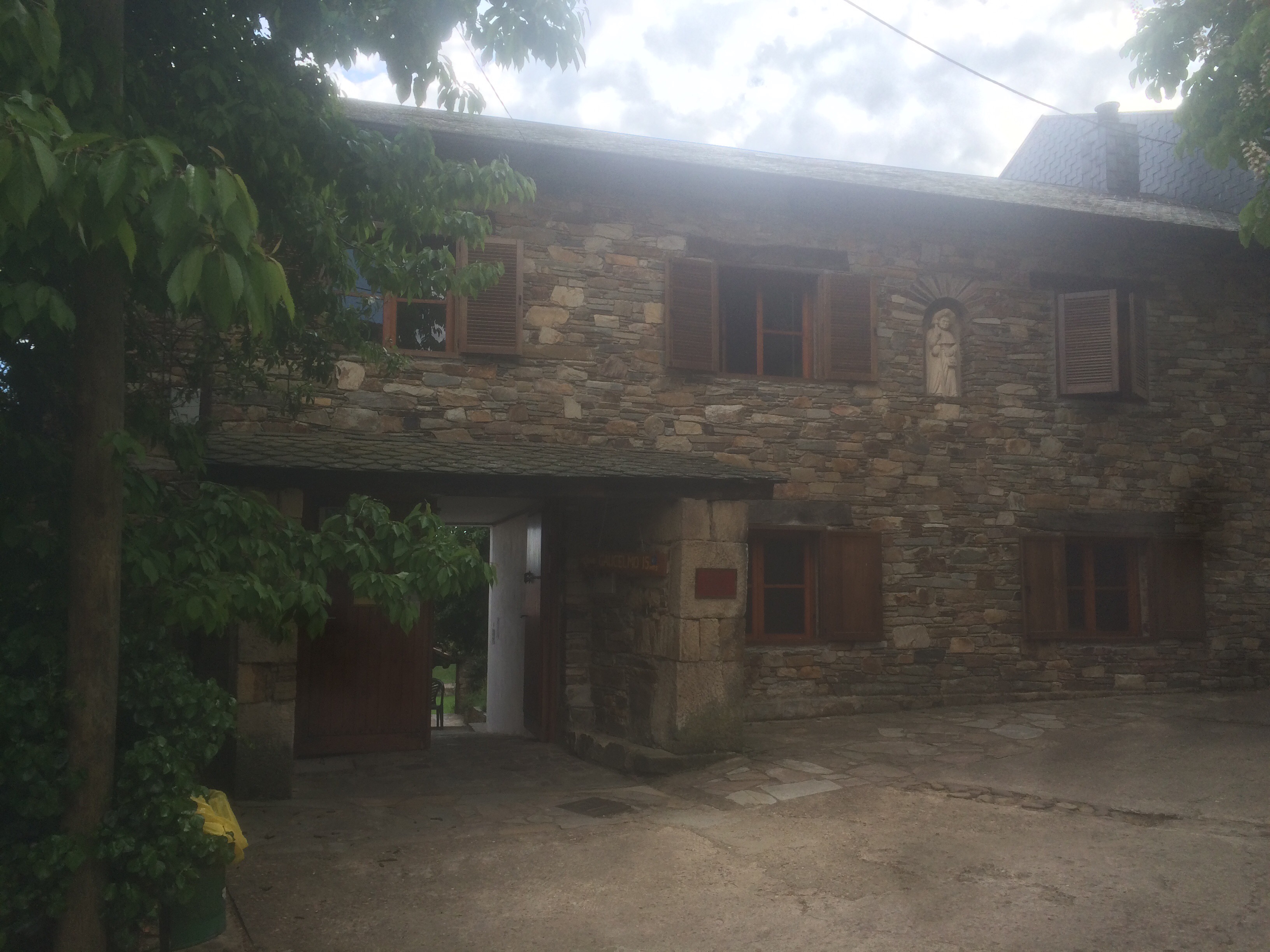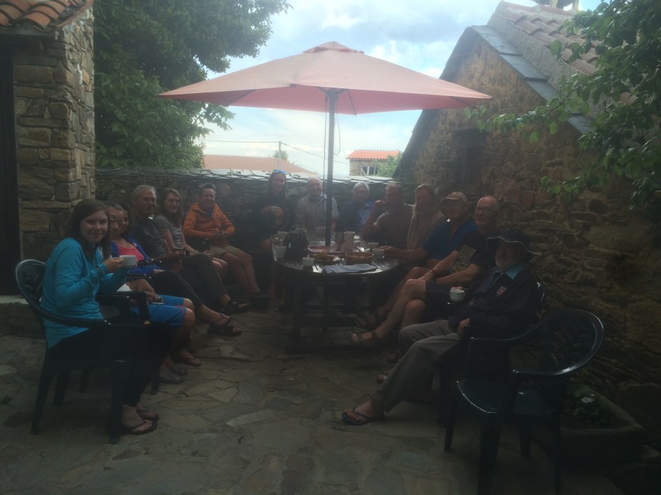 Today I’ve reached the beautiful village of Rabanal del Camino and the very special Albergue Gaucelmo. It’s run by the British charity called the Confraternity of St James and is a remarkable place, an old house with extensive gardens staffed by volunteers. Once we were settled they served tea and cake in the garden. Pilgrims are invited to make a donation for their stay. Several familiar faces are here and a pastor from Boston USA with her 3 beautiful daughters (sitting next to me in the photo).