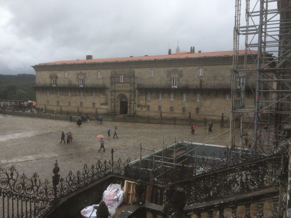I postponed visiting the Cathedral until later and checked into the Hostal dos Reis Catolicos, a former pilgrims hospital dating from 1500 and now a Paradore hotel. It had been a welcome relief for my predecessors who were attacked by bandits, wild animals and other pilgrims. Nowadays many pilgrims stay here to experience the incredible history of the Camino. There is a self guided tour of the building. It is also a welcome 25m from the finish line.