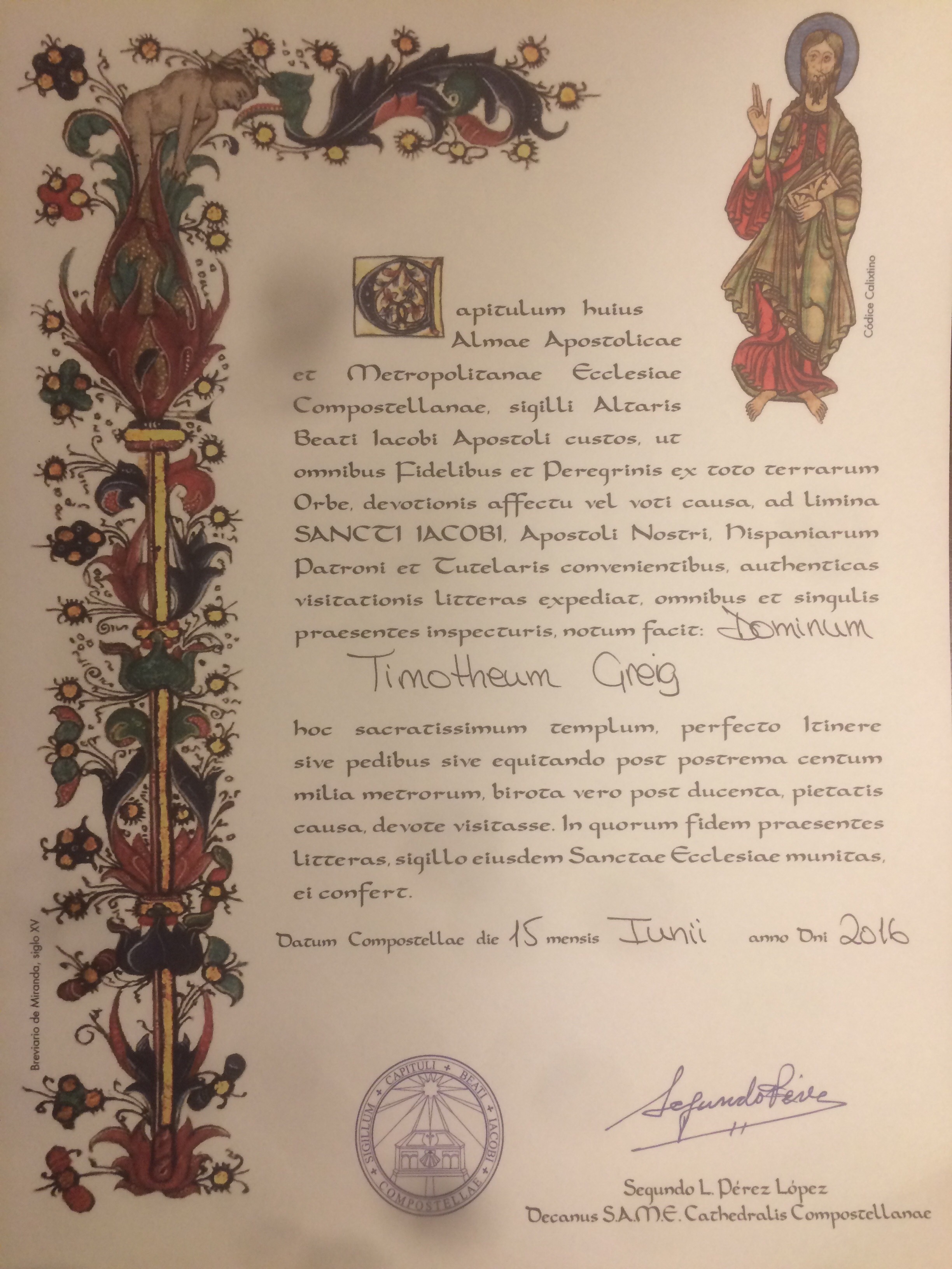 It becomes official at tomorrow’s mass when the names of all the new Compostela holders are read out.