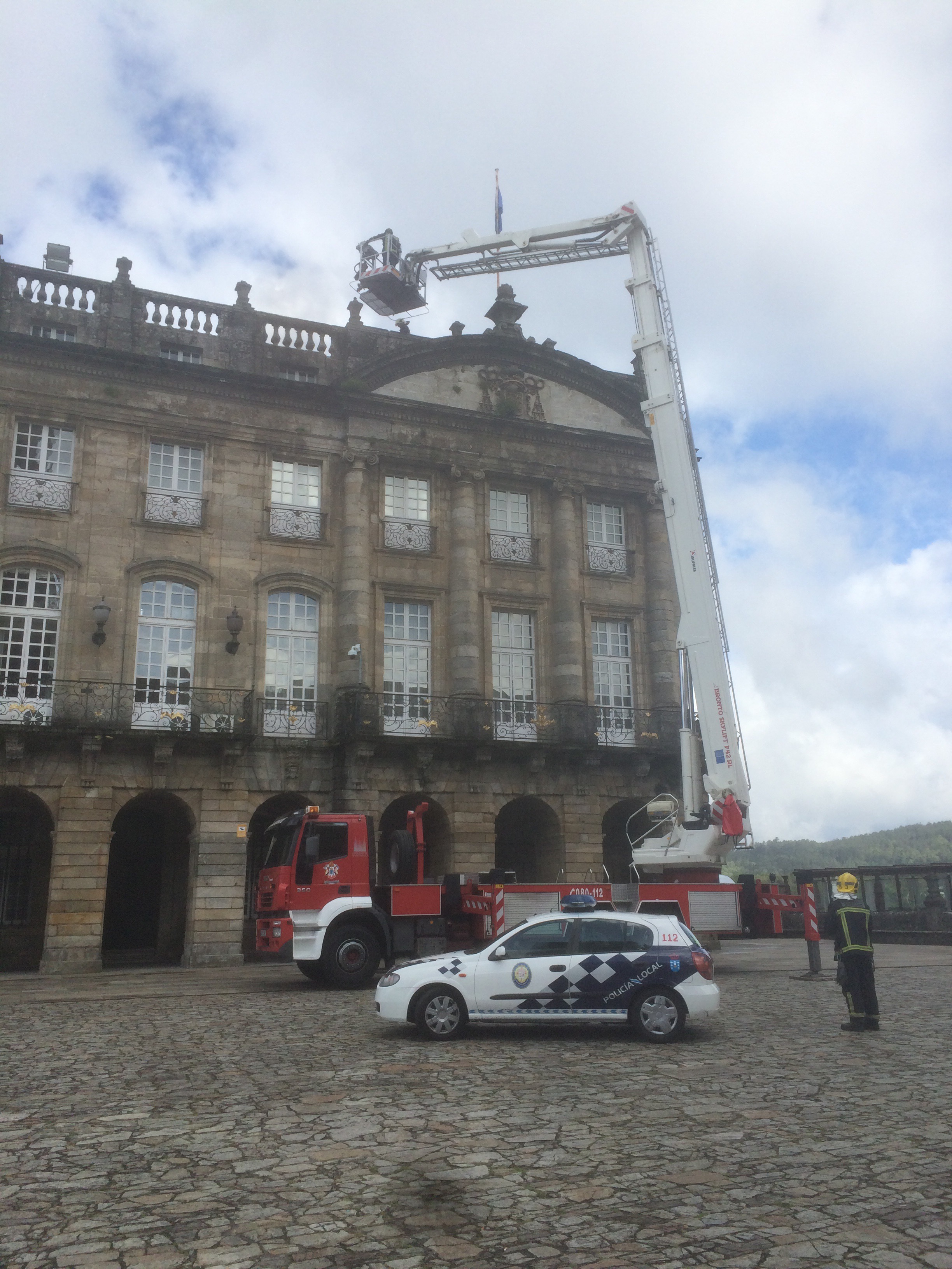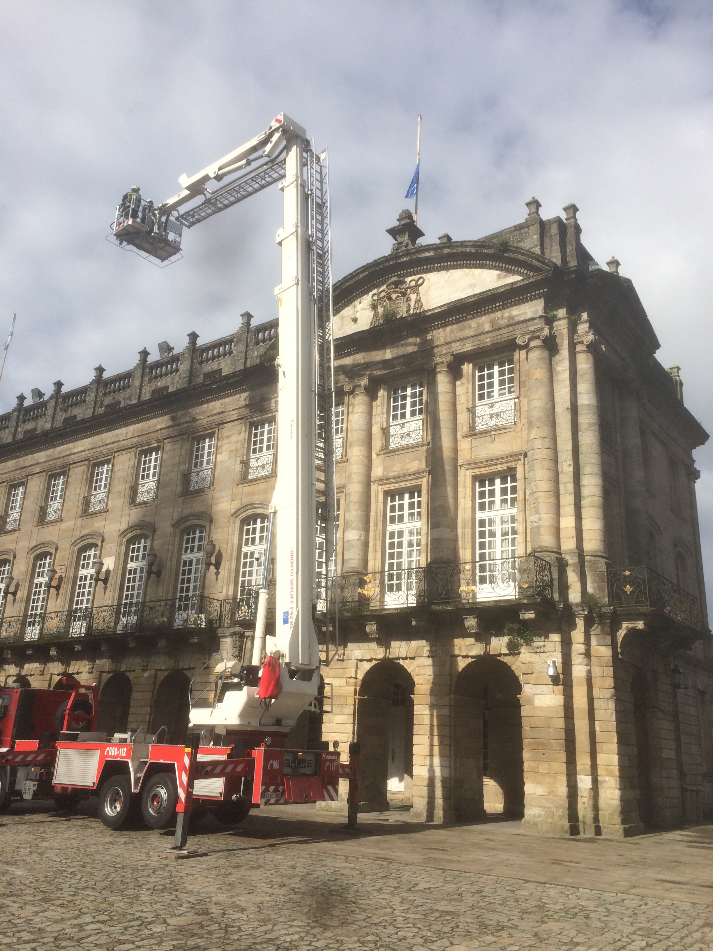 Fire Brigade rescue EU flag stuck at half mast