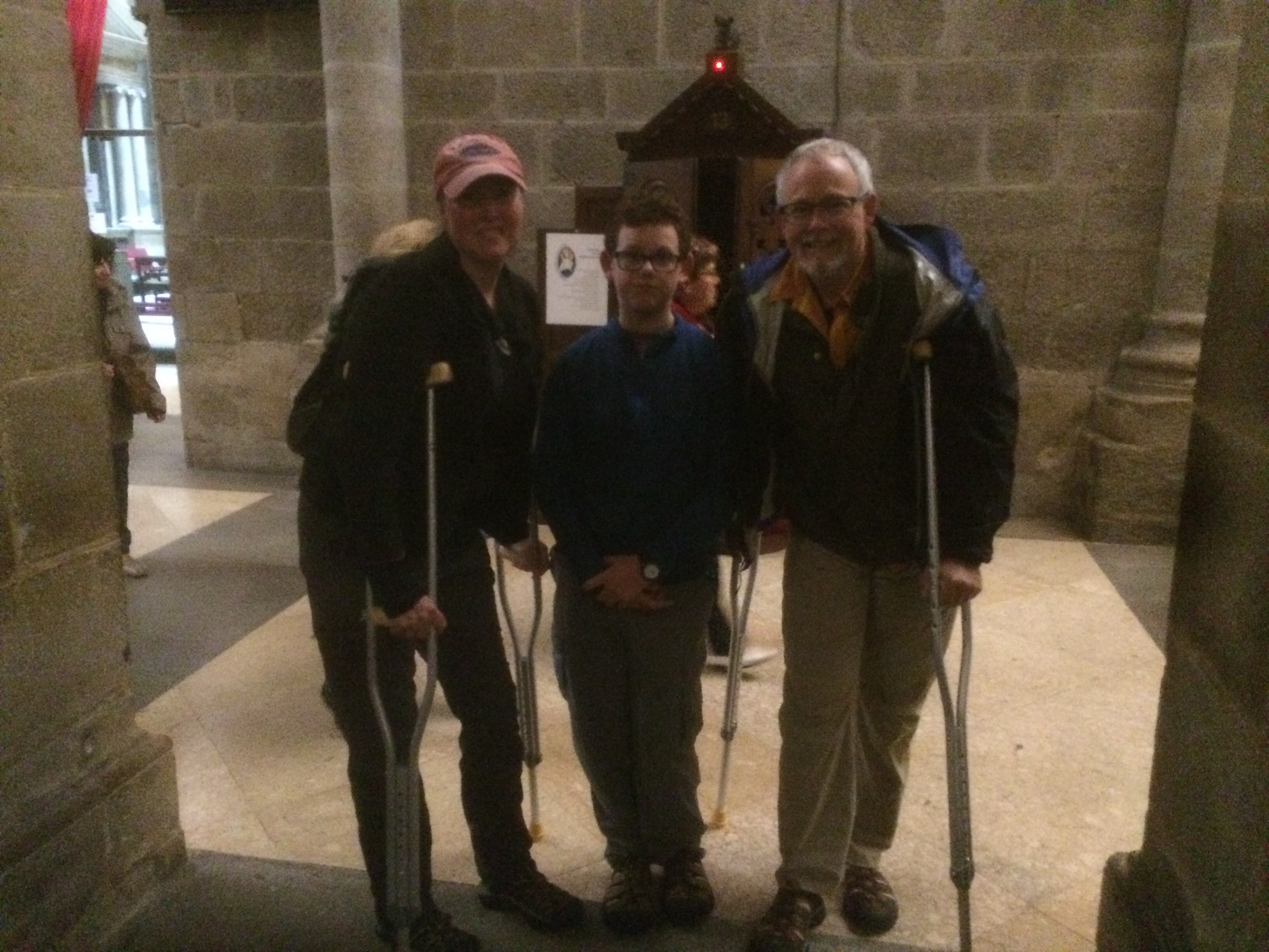 Doug, Susan & son in Mass on crutches
