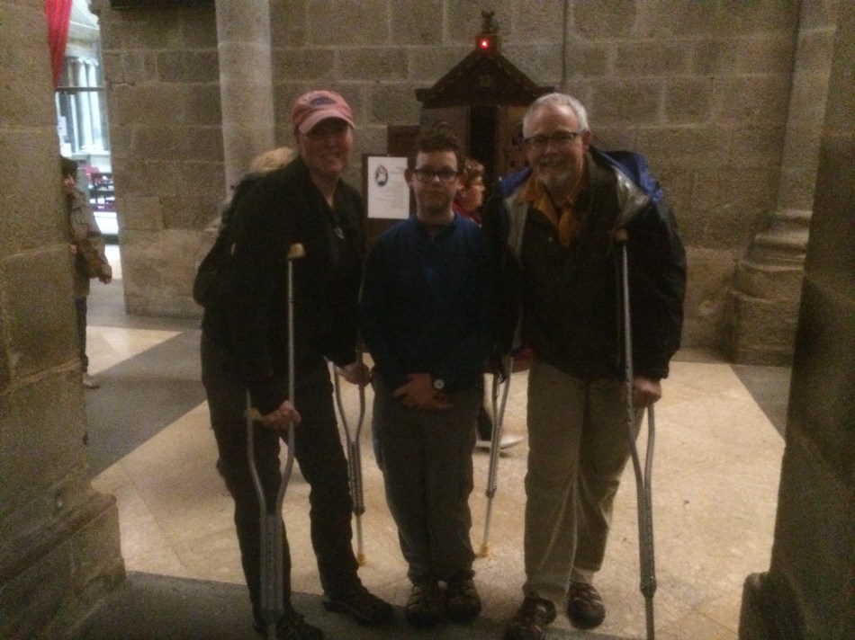 Back in Sarria I shared a dorm with a family from the USA and we met several times since then. But on Tuesday I saw them in big trouble and they had to resort to a taxi. They were also in today’s Mass, Mum and Dad both on crutches but no Compostela. It reminded me that the Camino is also one of the hardest things I’ve ever done (along with running the London Marathon and climbing Mt Kenya).
