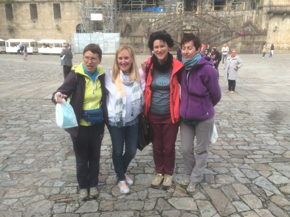 But most of all the Camino has been the most fun I’ve ever had. Yesterday I was washed ashore feeling quite lonely because so many of my pilgrim friends had already departed before I arrived in Santiago. But today I attended the 12.00 Pilgrims Mass and met up with others who were following behind me. I sat beside a Swiss couple (quite by chance) whom I first met before Leon and to whom I am Mr Chelsea. Manfred walked with me in the early part and is here too; we had lunch together. DJ arrived this morning with the Italian girls from the magic British Albergue in Rabanal. We all had a delicious meal this evening, avoiding the Pilgrims menu. And SG is just 10km away, arriving tomorrow.