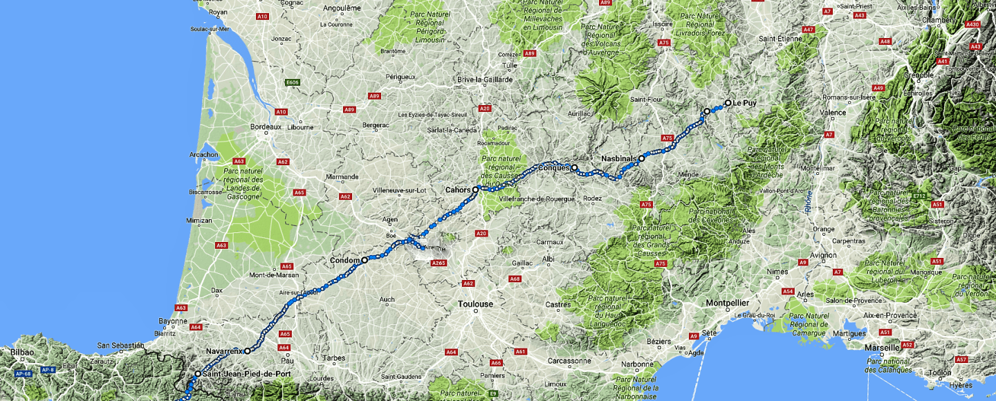 This walk has a distance of about 820 Kms, somewhat shorter than last year, but is mostly over very rough terrain with constant ascents and descents for much of the way. I travel out to Le Puy on 8 May 2017. If good fortune prevails and I arrive at St Jean Pied de Port, I will join the new pilgrims starting the Camino Frances and my walk will climax with the crossing of the Pyrenees and a descent into the familiar sights and sounds of Pamplona, hopefully well before the start of the Fiesta de San Fermin on 6 July.