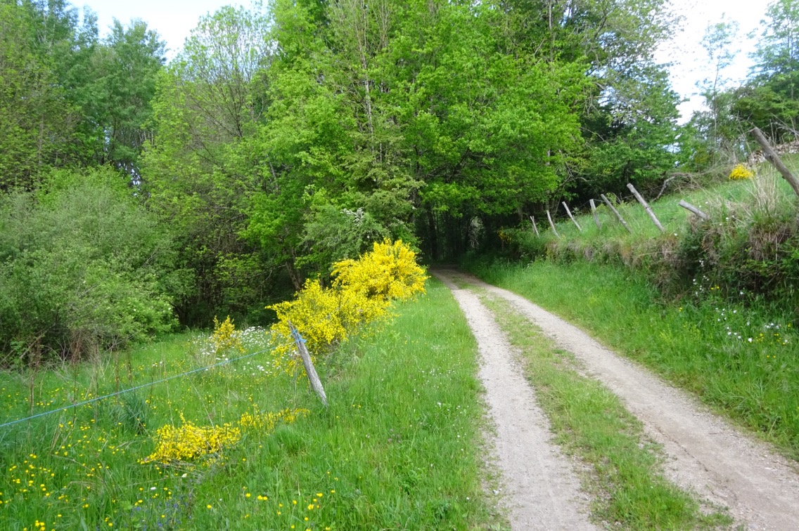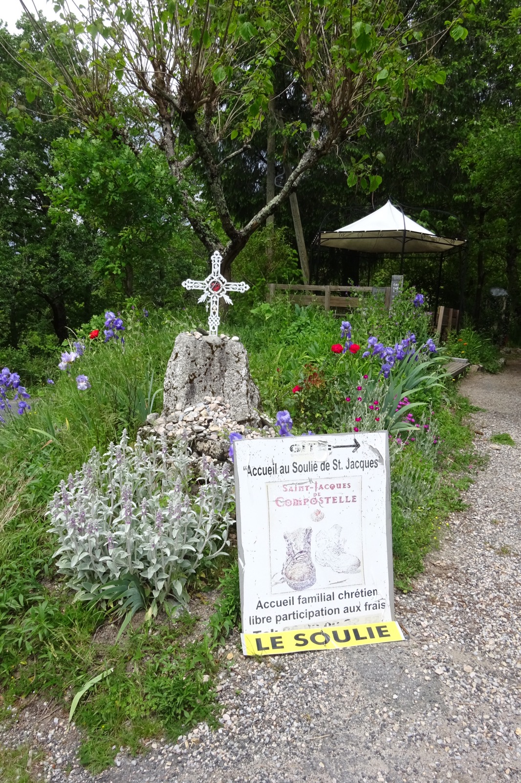 It was a long walk to Campagnac and I was already planning a nice salad and selection of local cheeses rather than the usual sandwich. Perhaps even a small 1664. The first hint of disappointment came when we passed an abandoned farm and “I” said it was in fact Campagnac. We scanned the maps and apart from the facilities at Campuac there was nothing more to be seen. Except for a tea cup symbol in Le Soulie, a little further along the way. Le Soulie turned out to be some sort of religious retreat. A priest welcomed us as pilgrims bound for the Apostle in Compostela and allowed us some time to pray at a rare statue of Saint-Flour. I prayed for lunch and was rewarded with a small black coffee and 2 long lasting Madeleine sponge fingers. We made a small donation and set off.