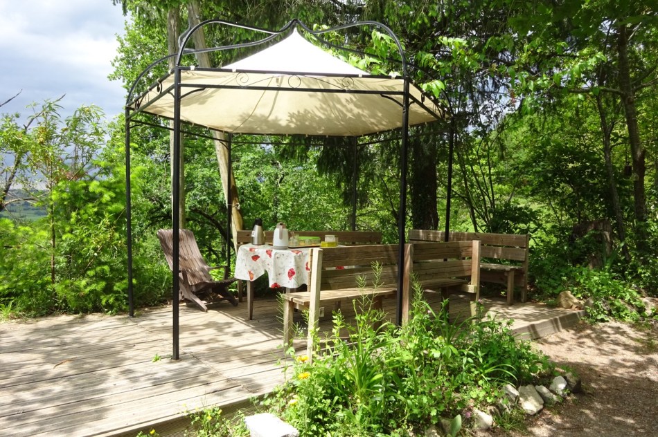 The Demaine de Senos gite is very pleasant. I’ve showered and drank a very likeable Aubrac blonde and written up the day’s events. Just now there was a commotion outside and M Hulot has arrived with his followers dripping wet and looking the worse for wear.