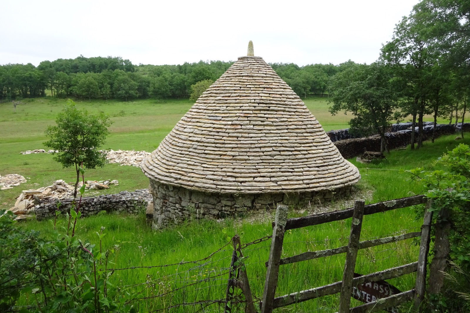 I think the man from UNESCO has walked this way because I’m now on another world heritage listed section covering the Causses limestone plateau in Quercy. Watch out for stunted oak trees, stone walls and peculiar little conical stone huts built by shepherds. Walking with A&R today was a revelation. Instead of looking at the endless buttercups, poppies and honeysuckle, R gave us a lecture on all the orchids along the way, pointing out which ones smelled of goats and the ones which look like they have bees attached. Only certain species of bee pollinate each orchid. Of course, progress was interrupted as every unusual specimen was photographed.