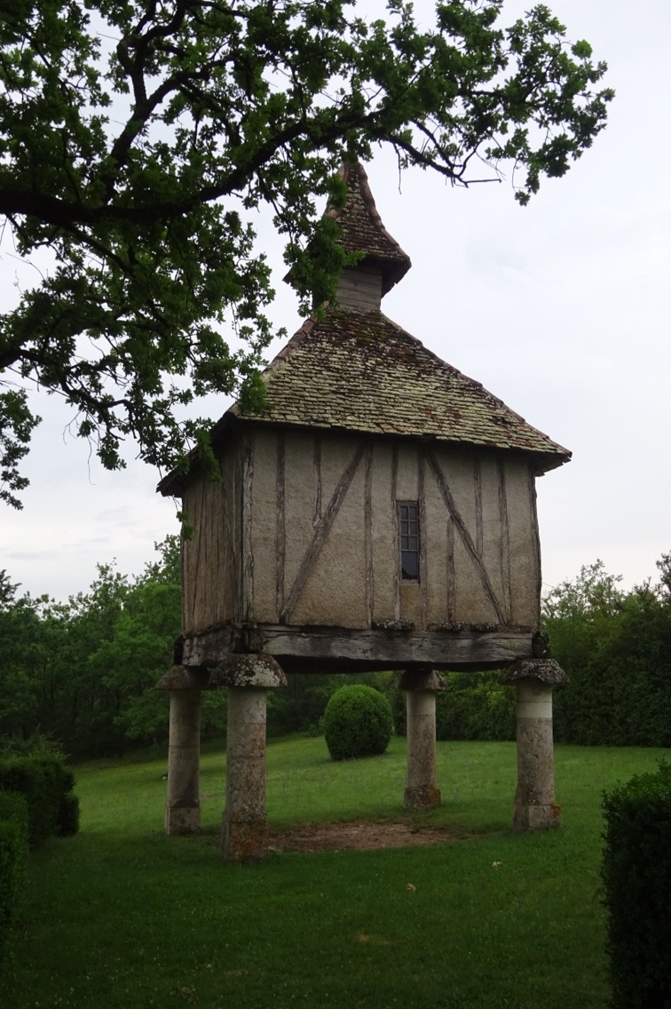 • Hi Martin yours is the only entry but sadly you’re wrong. It’s a pigeon house. The birds fly in the top and the farmer collects the droppings underneath for fertiliser. They are quite a feature around here.