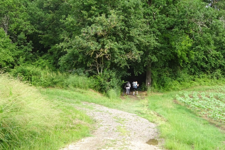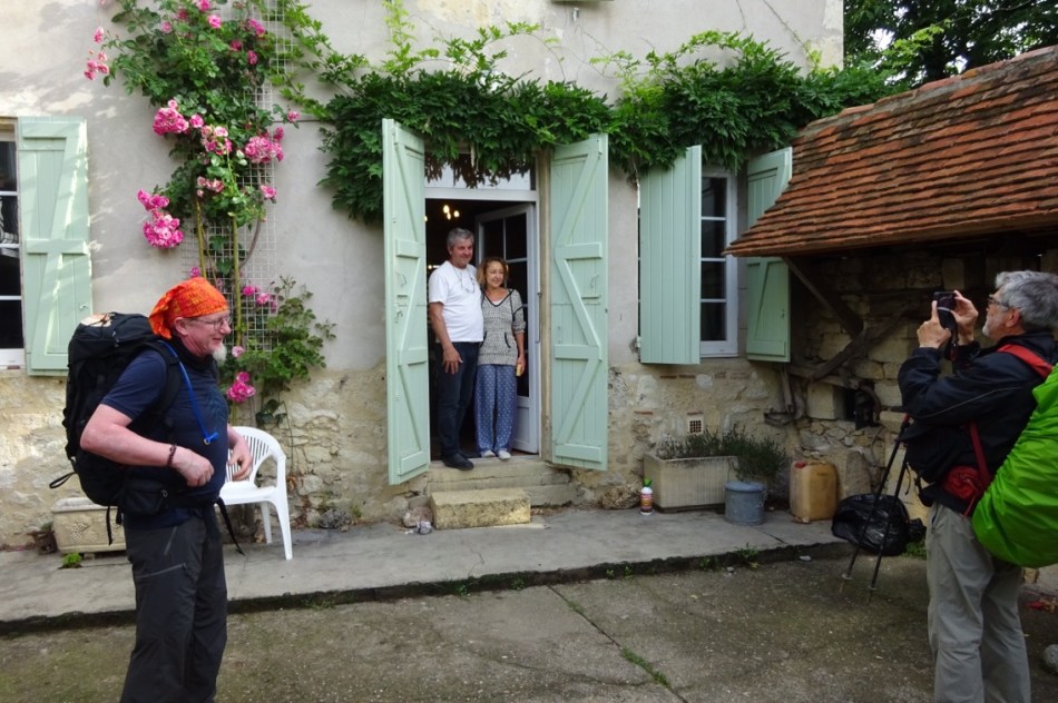 If I hadn’t made a reservation I’m sure I wouldn’t have chosen last night’s chambre d’hote. But in the event it set me up for another memorable evening. Soon after our arrival the rain started and continued for the rest of the night. Water drained through all sorts of unlikely places in the house. The owner booked us a table for 4 in the little wooden shack which served as the only restaurant in the village. It was fortunate as he had already reserved a large table for his own family and friends and the place was filled by one other booking. Less fortunate pilgrims were turned away.