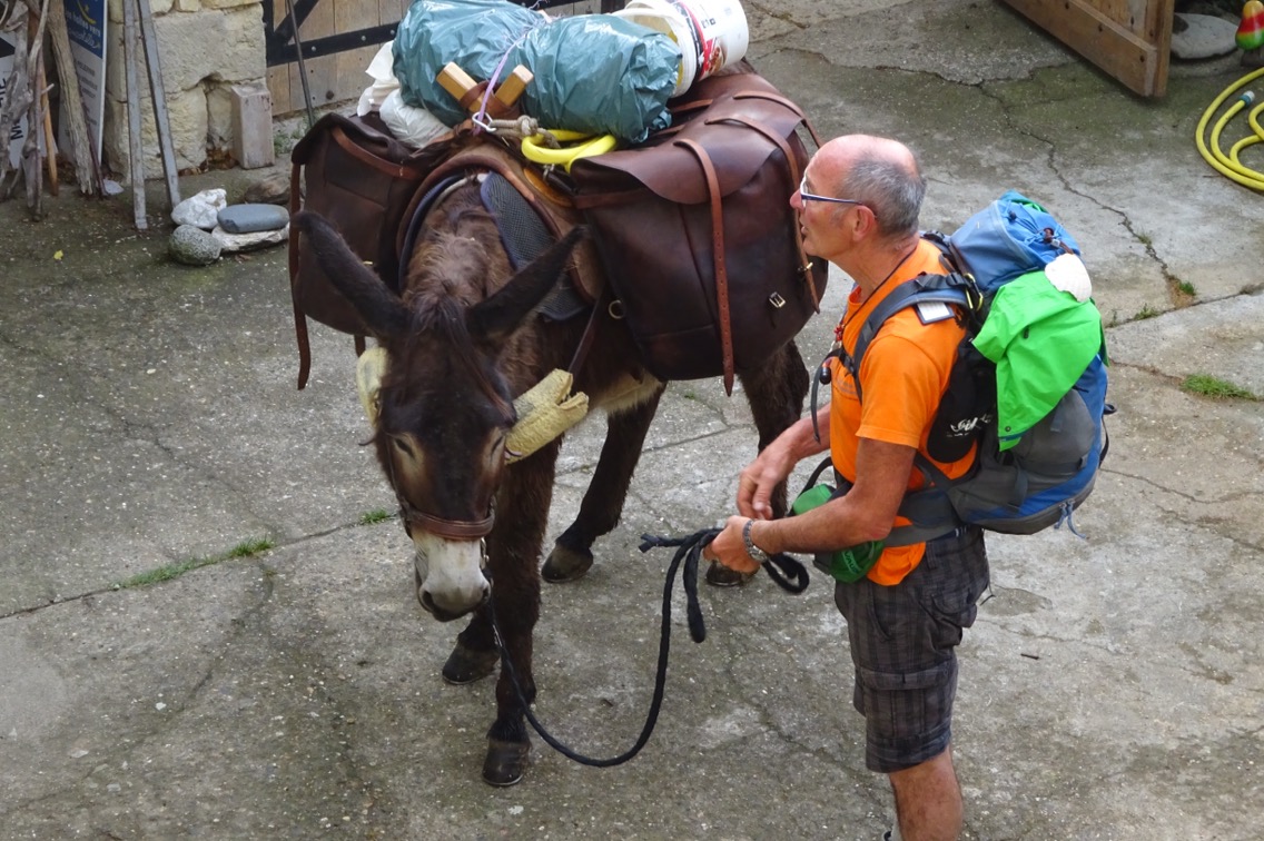 I have to say straight away that I haven’t got the guts to make this journey with a donkey and I was in awe of their exploits. They had previously walked the nearby Stevenson Way in the Cevennes with a donkey, inspired by the famous book I mentioned earlier. I suspect there are many donkey rental companies in the Cevennes like there are many boat rental companies on the Norfolk Broads. And I suspect many donkeys are prematurely returned. But the Swiss couple had found their passion and were enjoying their donkey camino. Being France, there are plenty of places to stay with a donkey. Last night’s owner had a small horse in a paddock and judging by the state of the donkey this morning, the two got along well. The morning ritual is to scrape out all the mud from the hooves, load all its equipment and set off, carrying your own backpack of course. I heard the horse shouting farewell as they departed.