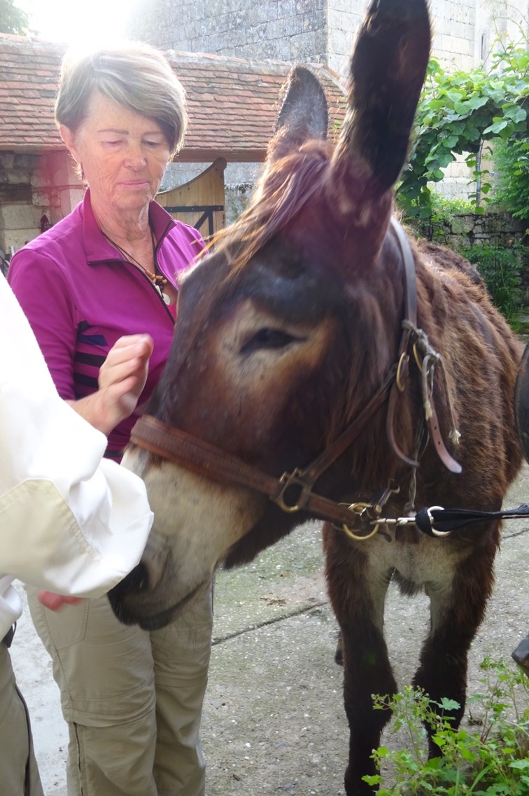 We shared a table with the Swiss couple who are walking all the way from Le Puy to St Jean with a donkey. They live in the French part of Switzerland and even though they were clutching the same Swiss passport as C, they might as well have come from different countries. So English was the only common language and I got the chance to learn about life on the road with a donkey.