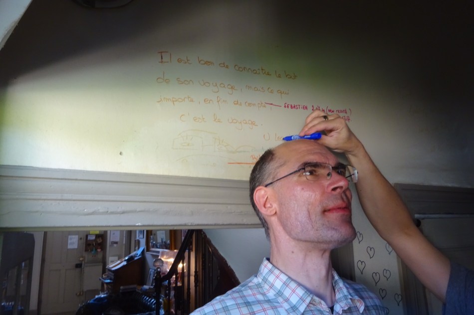 Mind your head: a 2m German gets a notch but is short of a 2.07m French man in the gite