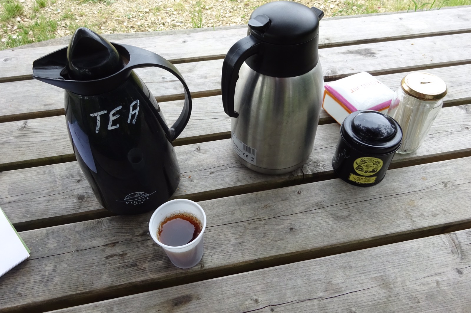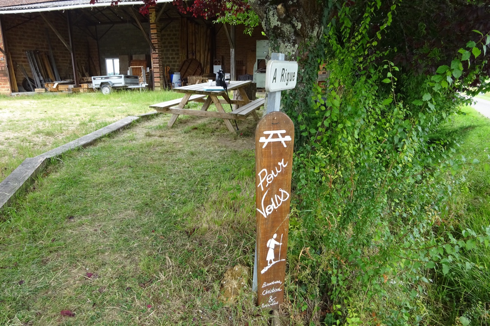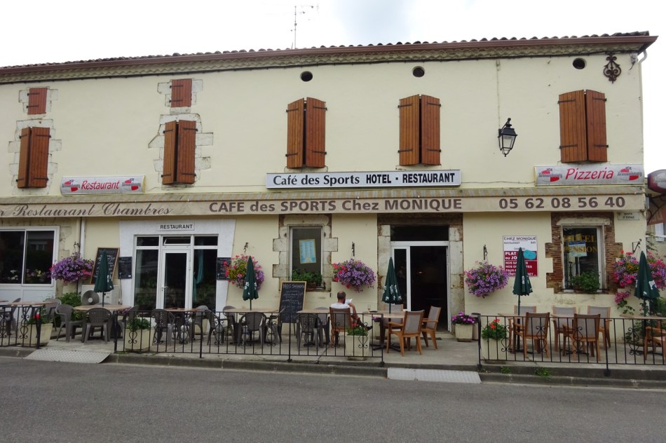 However I cheered up when I was clear of Eauze. Unfortunately I’d forgotten to refill my water bottle and soon experienced the gurgling noise of an empty water bladder. A little bit of a problem during a heat wave when there is still 2 hours to walk to the next village and one has burnt one’s bridges in the previous town. However, the Camino provides… and soon I passed a farm with a table outside and a flask of tea and coffee. A message said Pilgrims help yourselves and there was a book for comments. It restored my faith in humanity. I left a comment expressing my gratitude and eternal appreciation of their kindness. And all was well when I arrived in Manciet and checked into Monique’s Hotel and Cafe Sport. Kronenbourg on tap and tennis on the TV.