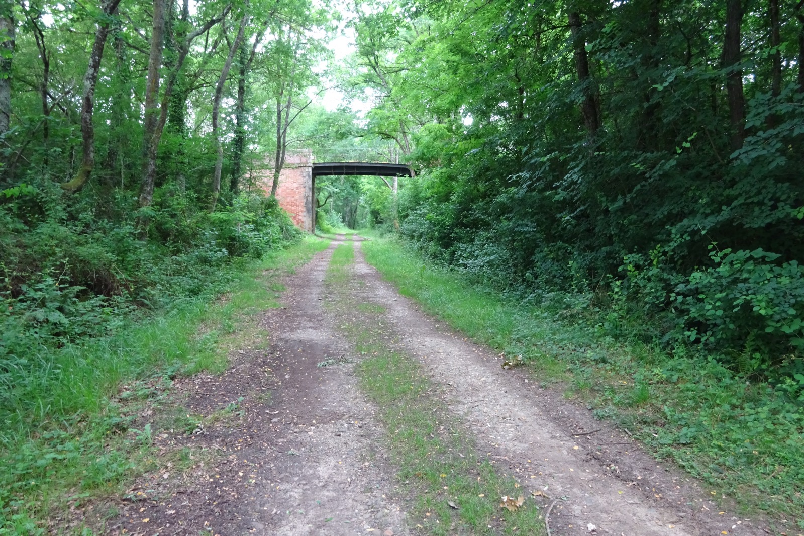 I set off after 8am which is rather late but I was only intending to walk 17Km to Eauze. Soon the wheat fields vanished to be replaced by vineyards all over the hills as far as you can see. Teams of men were tending the vines. The grapes will be made into white vine and then distilled into Armagnac. The last 7Km into Eauze was along a disused railway line and was great walking, nice and flat and shady with elaborate bridges along the way.