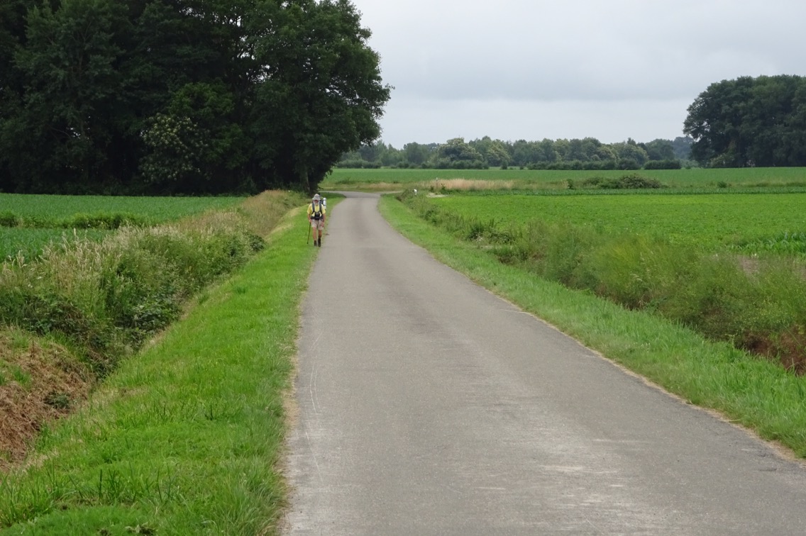 Today is the start of 5 consecutive long days of almost 30Km per day and then a gentle 20Km into Saint Jean PdP on Saturday. It’s like a motorway compared to the landscape already covered. Mostly little tarmac roads running dead straight and level through huge cornfields. No more vineyards; no more Armagnac. I walked with A from the next bed and we maintained a good pace.