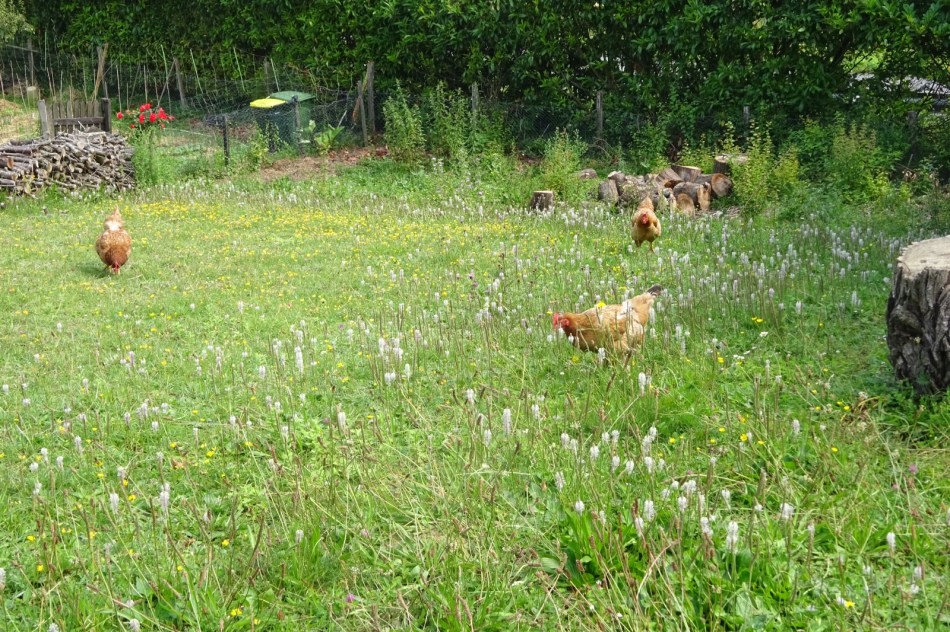 If you looked at yesterday’s photo selection you’d have seen a Monty Pythonesque scene of P, the US business consultant sitting at a desk in the woods on a Skype video conference. He turned up at the gite mid afternoon like a crazy lost prospector coming out of the Sahara. Doors banging and shouting for a beer. To be fair, he was in a terrible state having walked 38Km, tarmac stuck to his boots. I am constantly reminded of Noel Coward’s song “Mad dogs and Englishmen go out in the midday sun”.