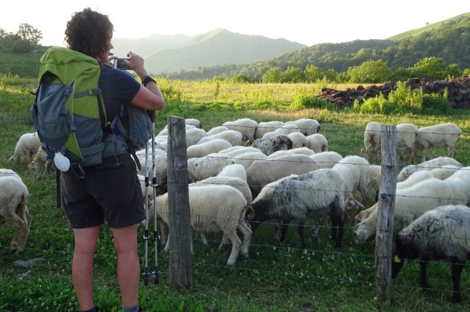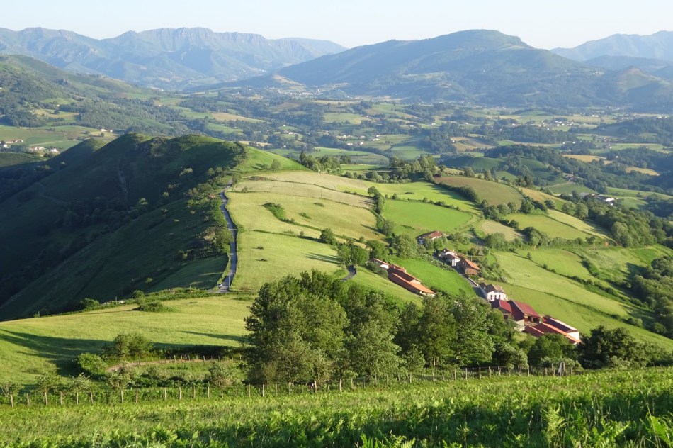 The walk was both beautifully scenic and historic. One thinks of Charlemagne and Napoleon but more especially the people who have bravely crossed the Pyrenees in all seasons to fight in the Spanish Civil War or to escape the Nazi Vichy French regime. But for us it was a perfect day of blue skies and clear visibility without the usual early morning mist. We reached the Orisson gite at the end of the steepest section by 8.15 and had coffee and Basque gateau. M had booked a night there, possibly expecting to arrive much later but she was looking forward to some peace and quiet to continue writing her next production.