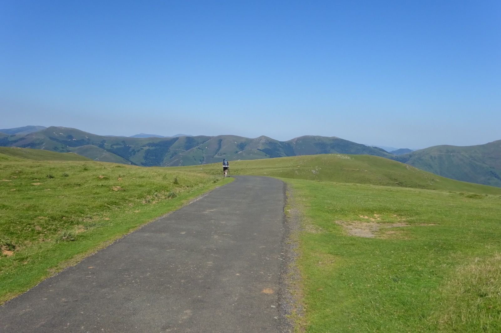 The walk was both beautifully scenic and historic. One thinks of Charlemagne and Napoleon but more especially the people who have bravely crossed the Pyrenees in all seasons to fight in the Spanish Civil War or to escape the Nazi Vichy French regime. But for us it was a perfect day of blue skies and clear visibility without the usual early morning mist. We reached the Orisson gite at the end of the steepest section by 8.15 and had coffee and Basque gateau. M had booked a night there, possibly expecting to arrive much later but she was looking forward to some peace and quiet to continue writing her next production.