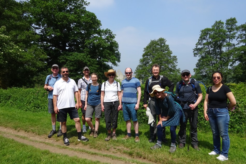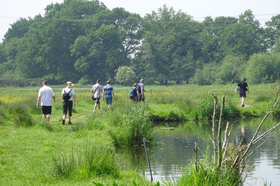However the day dawned brightly and at 9.30 Paul and I set off accompanied by a delightful group of would-be pilgrims. I was so happy to have my family, Mandy, Adam and Sophie together with my friends Martin and Sue, Mike and his daughter Mel and Robert & Qwan with us for the day. We reached the end of the road without incident but then the leading group turned left instead of right, a mistake that might have added thousands of kilometres to the journey. But we recovered and soon found a secret footpath which I’d never walked along before. This led us to the River Wey and onwards towards Rome.