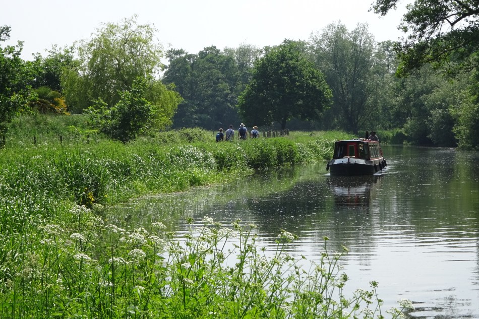 The weather was delightful and we were all in high spirits. We stopped at the Anchor for coffee and found a table big enough for eleven despite it being Whit Monday. And then later, we had similar good fortune when we arrived at The New Inn for lunch. It was a joy to walk along the river which was glistening in the sunshine. Long canal boats made their way along or waited patiently at the locks built in the 17th century by Dutch experts.