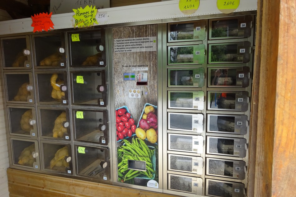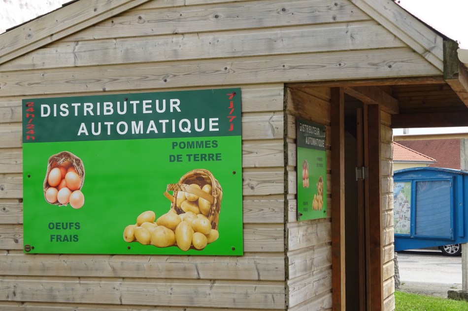 We also passed a very high tech kiosk dispensing potatoes and eggs. It protects the food from ravaging animals and the money from ravaging humans.