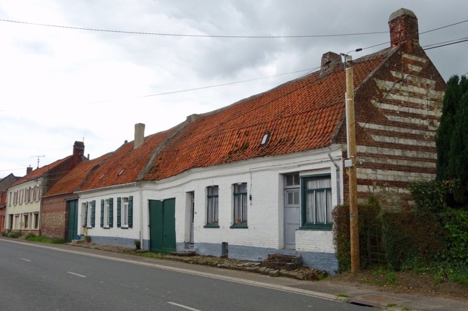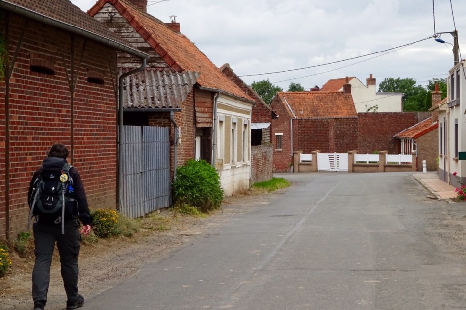 We were heading for Bruay-la-Buissiere for no reason except it is 32Km on the way to Arras. Paul had secured our hotel “Le Cottage” on Booking.com and we were pleased to get “the last room at this price”. 48 Euro. Our little country road had turned into a busy highway as we approached the town and I led the way along the hard shoulder wearing my bright orange fluorescent vest in the hope that it might sufficiently distract a driver from his mobile phone. An old Renault honked and someone waved a hand in support of this month’s pilgrims.