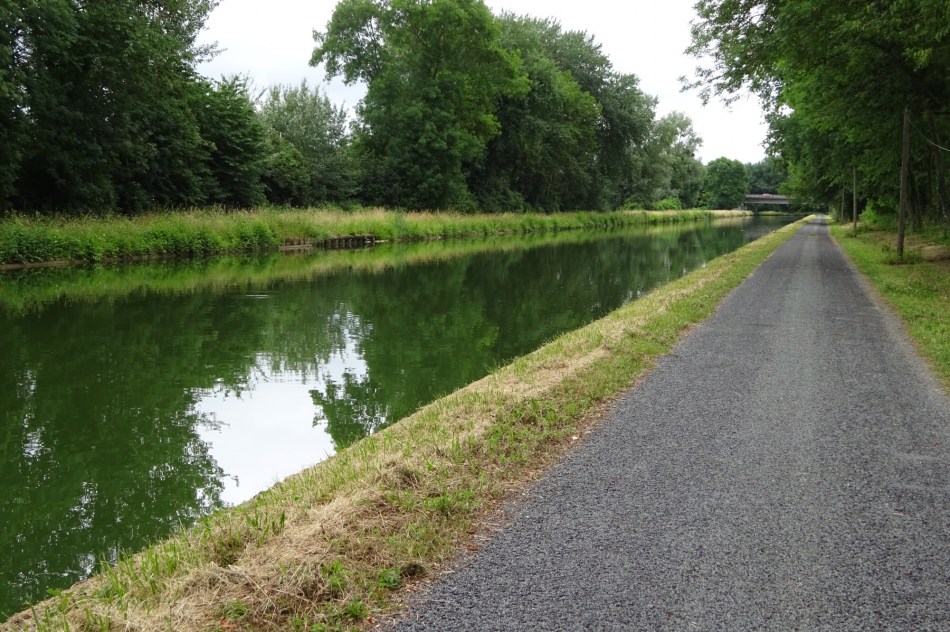 The walk to Tergnier was tedious and I took few photos. There was a supermarket where we bought lunch and a cafe in a camping ground where we drank coffee. We approached Tergnier along an insect laden canal but were diverted off it due to emergency gas works and walked the last hour through the waste land.