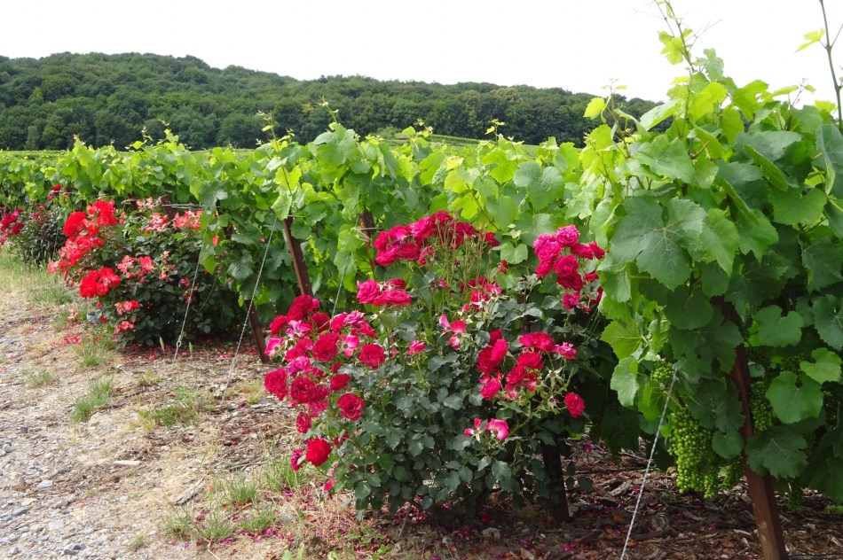 An old trick. Beautiful roses indicate a healthy vineyard.