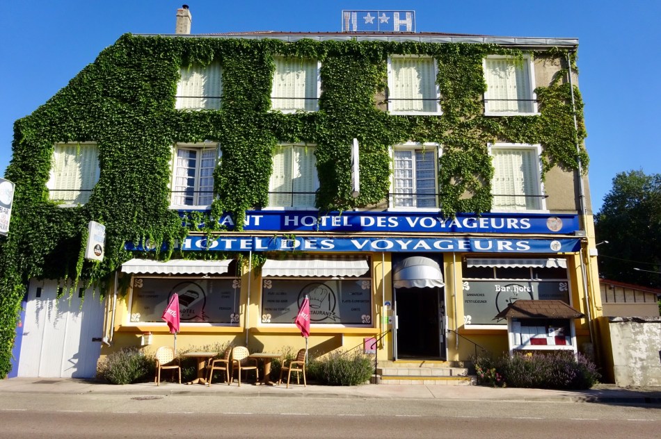 Today’s plan, hatched last night, was to start at 6.00. I told the hotel des Voyageurs owner (a Gerard Depardieu lookalike) that we would skip breakfast and he showed me the emergency exit. This morning, however, we amended the plan. I asked M Depardieu to set a table and we had a leisurely croissant. And good cafe au lait.