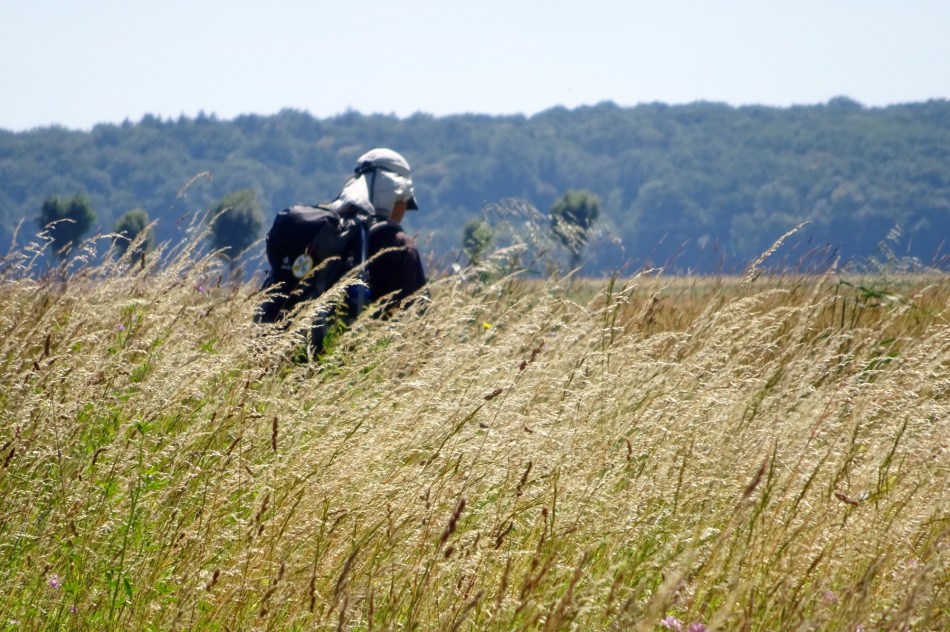 You could be forgiven for looking at my photos of flat empty landscapes and imagining total silence. But anyone who has ever gone out for a walk, never mind a pilgrimage, will know the subtle sounds of the countryside. There is the steady sound of your own shoes walking along. There is the sound of birds singing to each other. And there is the sound of the wind rustling through the wheat and tall grasses. In France you may even hear the swish of a TGV speeding between cities.