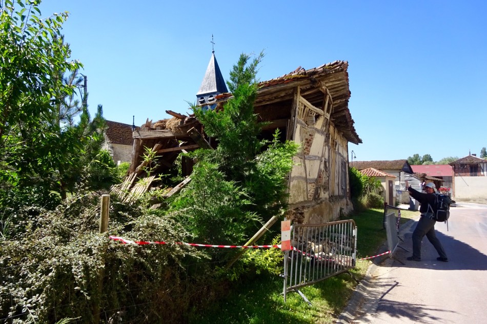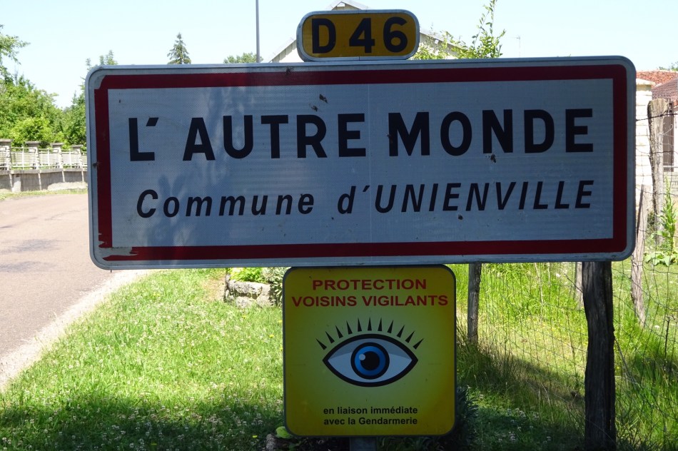We set off again and walked a few more metres when I remembered I’d forgotten to apply KOK to my feet. So we stopped again while I fiddled around in a bus shelter. After 3 or 4 kilometres we found a bar and stopped for a coffee. And soon after that we stopped again for an early lunch in another bar. What is happening? There are so many bars all of a sudden. Could this be the Upside Down world of France from a time gone by? Stranger Things have happened. This was soon confirmed by the name of the village “L’Autre Monde”.