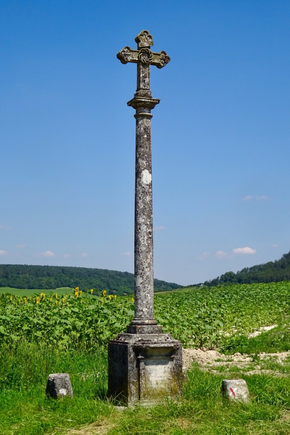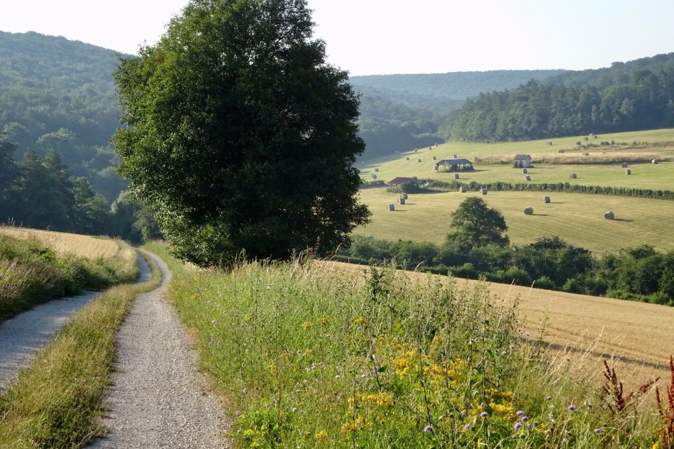 We set off this morning after breakfast to face the hottest day so far, 32 degrees. Our plan was to complete yesterday’s plan. Initially we walked through shady woodland but eventually we were dumped onto bubbling tarmac and even worse rough gravel surfaces for the duration. In the village of Cirfontaines-en-Azois I met an English gentleman whom I had mistaken for another pilgrim. In fact he lived in a lovely large house with a beautiful garden. Due to an unfortunate sequence of events we had been invited into his garden by a colourful village character whom we assumed owned the house. So when we were discovered, our welcome did not extend to an invitation for a cup of tea.