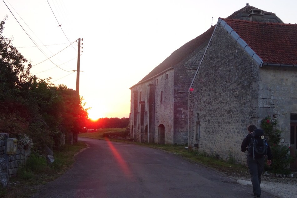 Paul set the alarm for 5.00 once again but we were awake before it went off. There is almost a panic to get up and go. You’d think we were in a panic to catch a train in 10 minutes but every minute of cool refreshing pre-dawn air that is squandered costs us dear in the afternoon when the sun beats down on us. We made a quick cup of tea but that cost us precious minutes and the sun was already beaming through the ruins of the Mormant Abbey as we closed the door of the gite and set off on another day’s walk.
