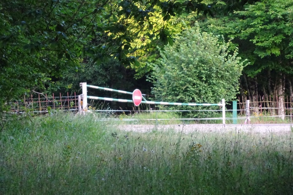 Unfortunately as we approached the woods we found our path completely blocked by an electric fence and notices proclaiming the land to be private property and to keep out for our own safety. Hum. At this point I would normally take this advice and backtrack all the way. But Paul was brought up in Africa and takes a different view of the authority of some French land owning peasant with an electric fence. Over we went and on into the darkness of the forest past more notices about the hunting activities that take place there.