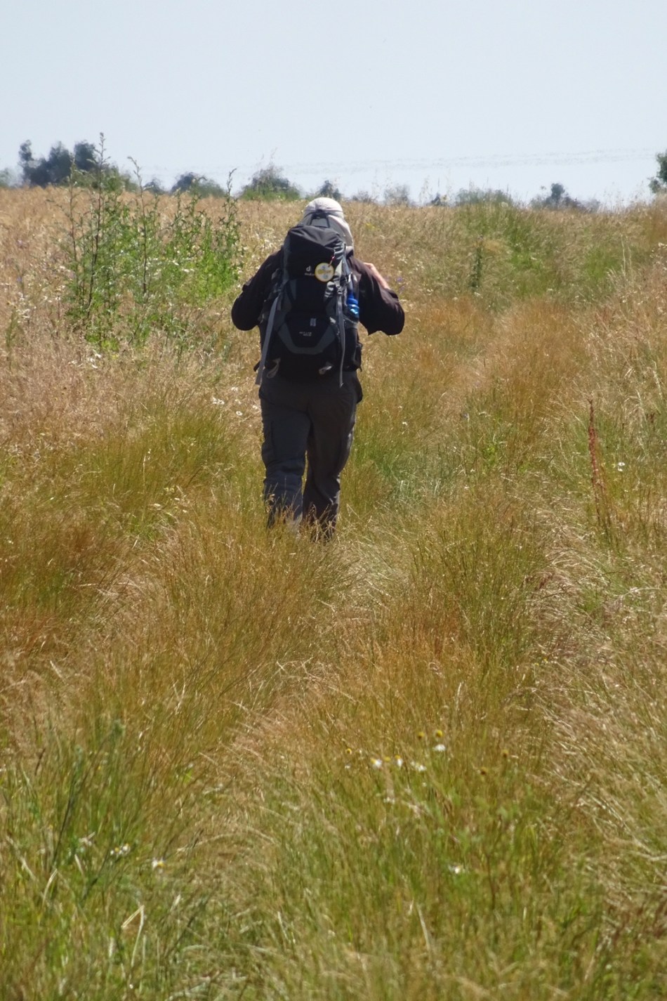 As you can guess, we were not shot or arrested and the walk was very pleasant. But I was glad to get out the other end and onto the road. In fact the whole 28km walk was nice. We had more woods, some fields of crops and, best of all, lots of wild flowers and butterflies. There was one magnificent black butterfly with large distinctive red circular markings right by my feet but sadly it got away before I could get out the camera and fumble around for the pet setting.