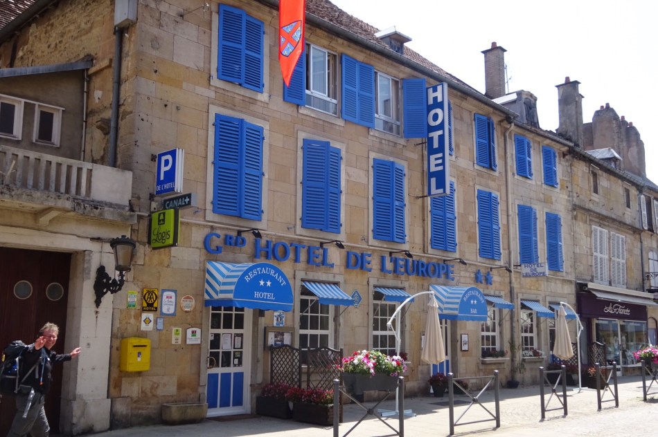 The early start meant we arrived in Langres in time for a tasty salmon salad for lunch and before the temperature reached 30 degrees. Langres is a pleasant fortified town with few concessions to tourism. We are staying in the Grand hotel d’Europe 2 star. 75 Euro for our room which is much cheaper than the competition.