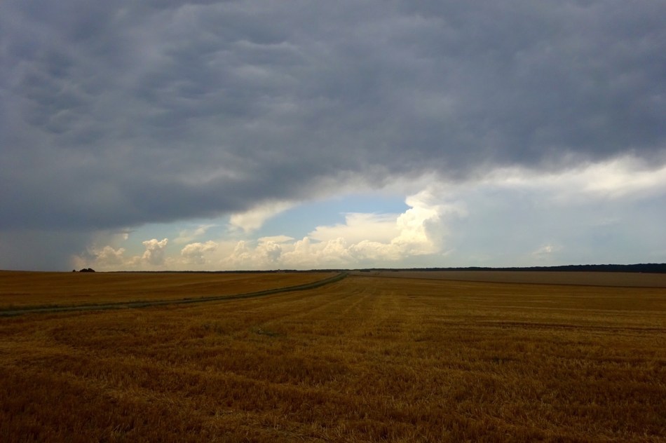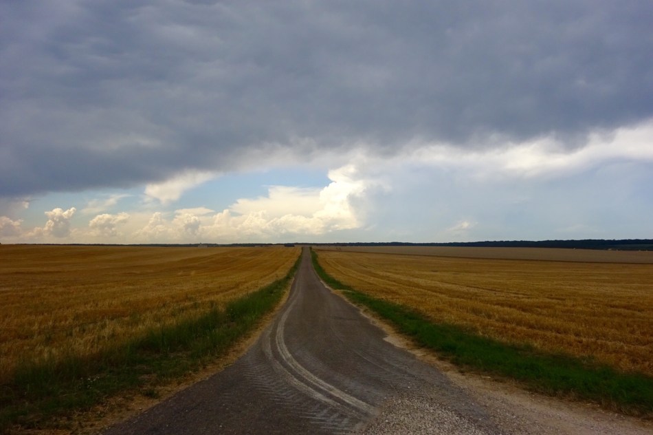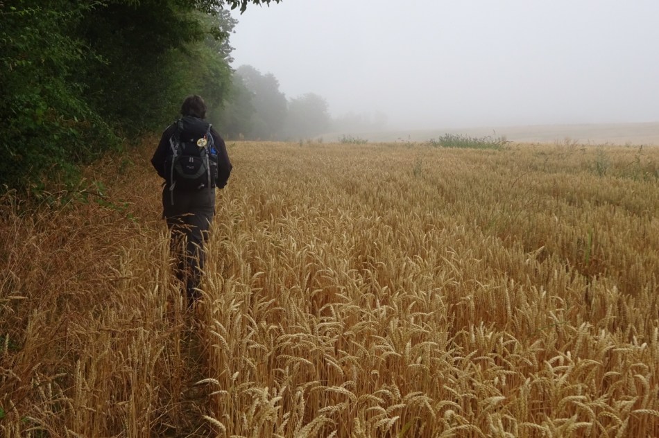 Champlitte has one boulangerie still operating and we bought some croissants for breakfast. Then Paul noticed a lady opening a cafe. Who knows what business she was expecting at 6.30am but she sold us a couple of coffees for 5 Euro. We then hacked our way through a wheat field and onto a path for a walk through shady woods and open fields.