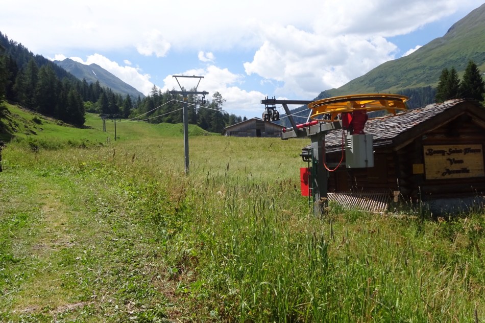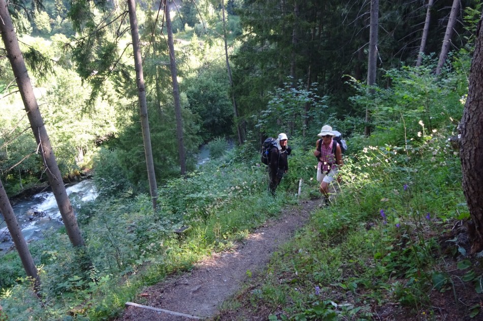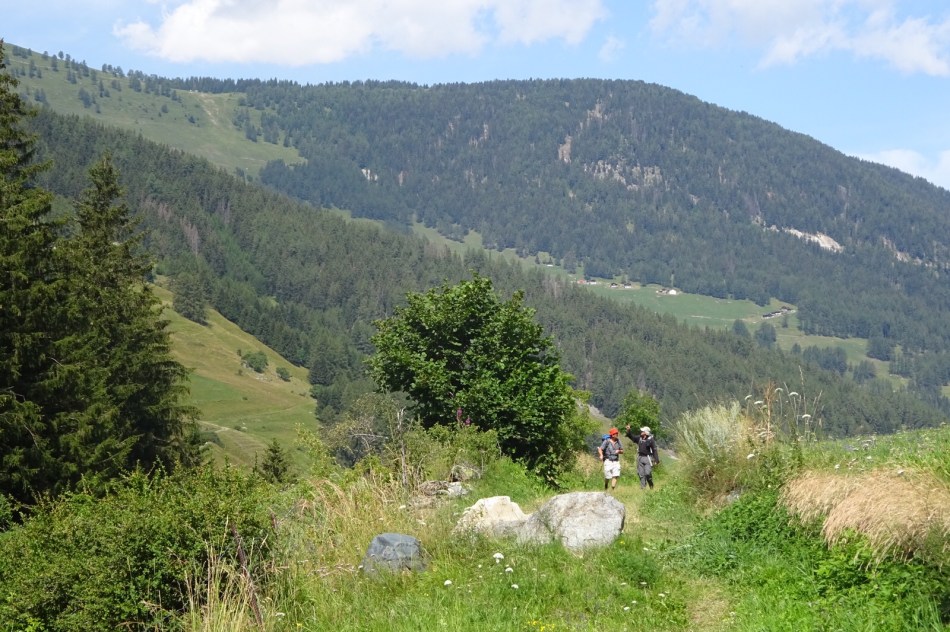 We have now reached Camp 2, Bourg-Saint-Pierre at 1632m. It was a long climb over 14Km from Orsières at 887m. Along the way, our path rose steeply then plunged, recklessly surrendering hard won altitude. Even at the halfway cafe the WCs were downstairs, adding to the descent and ascent. We are still below the tree line so oxygen is present but not plentiful.