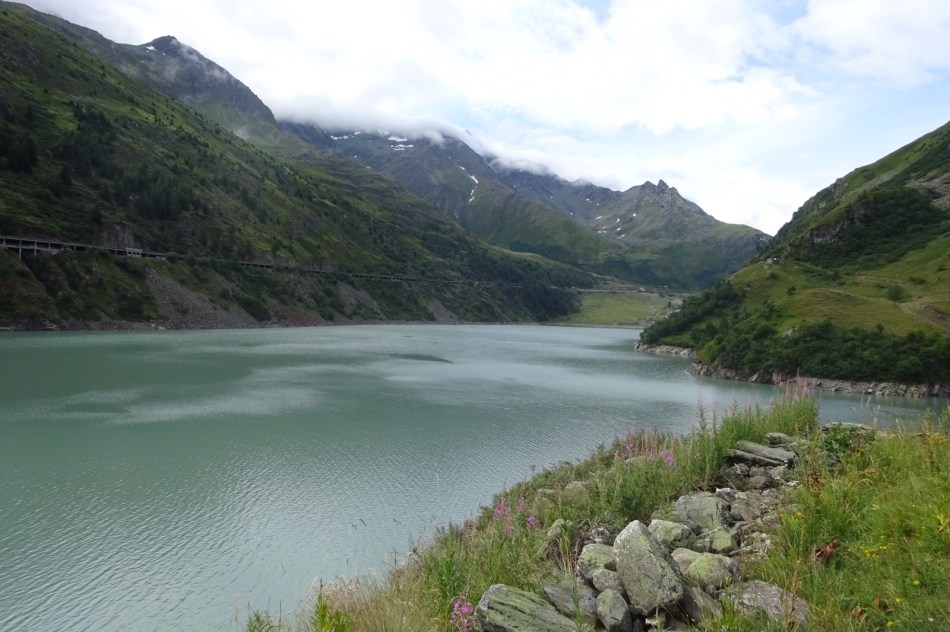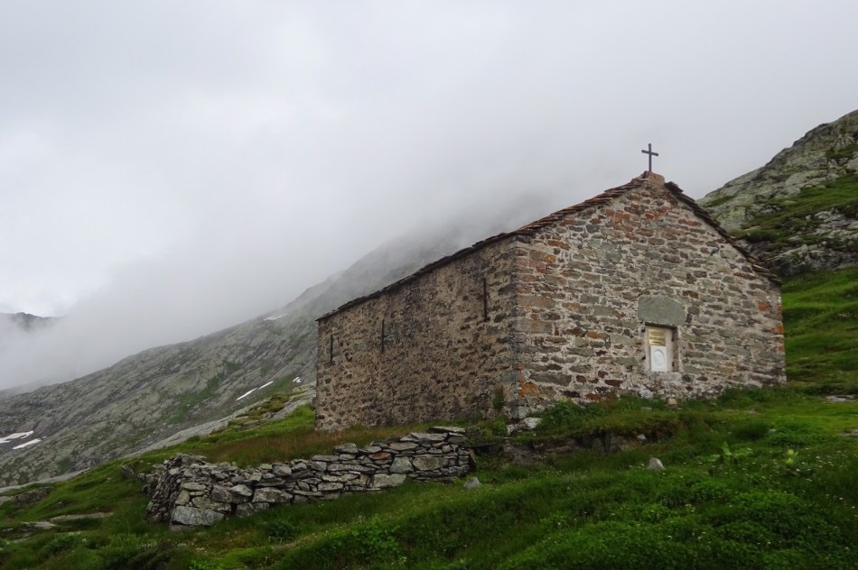 Here we are on top of the Great St Bernard Pass. Fortunately there was a short window of opportunity in the weather this morning from 8.30 when we decided to go, until 12.00 when we arrived. After that the clouds descended and the rain fell.