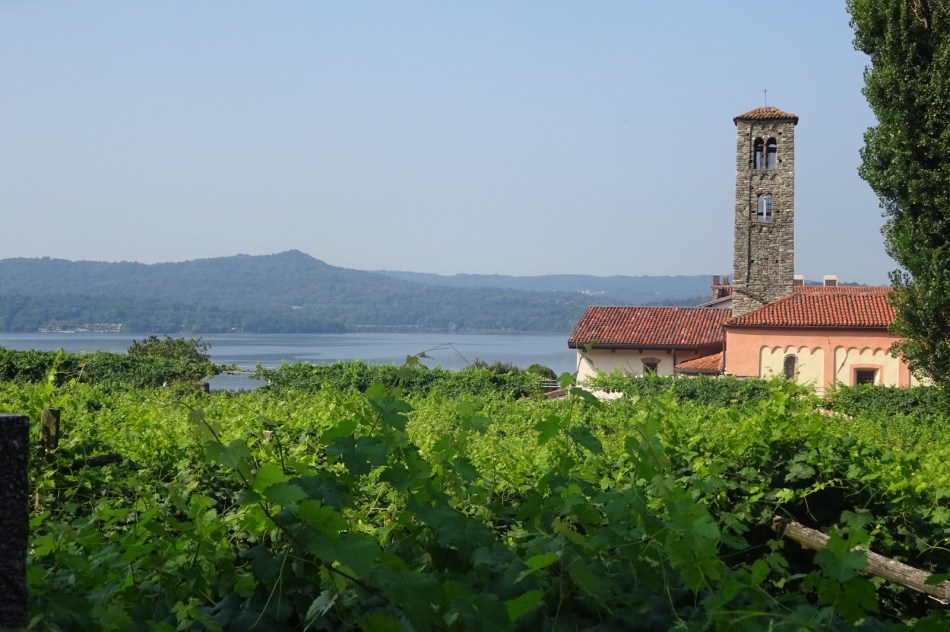 It was back to a pre-dawn iPhone alarm call this morning as we faced a gruelling 33km walk in the blazing, near tropical sun. For those who are interested we followed the AIVF historic variant. By 9am we had covered almost half the distance and we pulled into Piverone for cappuccino and croissants, an orange and a bottle of fizzy water. Rarely in life do I feel I’ve earned a little treat as much as when walking with a heavy back pack in these southern lands.