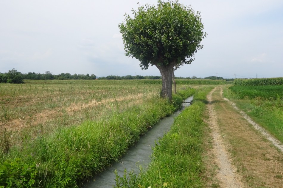 Despite that, we kept up a cracking pace and arrived in Santhia at 2pm. We sat at the bar opposite the church and the bar lady brought us beer and fizzy water. It appears that we are stuck with bottles of fizzy water for the duration. In France and Switzerland they are happy to bring a jug of cold water and glasses for free. Not in Italy. You have to buy a bottle of water or die.