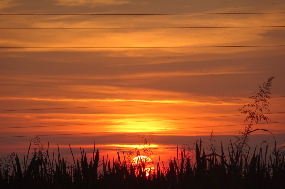 The kilometres passed rapidly but so did a few Fiats. What a noise those little Italian cars make when driven at maximum speed. It was about two kilometres from the end of the road that the narrow hard should gave up and so did my nerve. We left the road on a track and navigated our way through the rice paddies. Immediately the siren sounded and the mosquitoes were scrambled. They attacked from behind the sun, whole squadrons of kamikaze pilots intent on drawing blood. Paul told me about West Nile Fever but we won the first encounter. I had sprayed us both before we set off with insect repellent. The furious mosquitoes retreated in confusion but I expect reinforcements with sustained fire power along the way tomorrow.