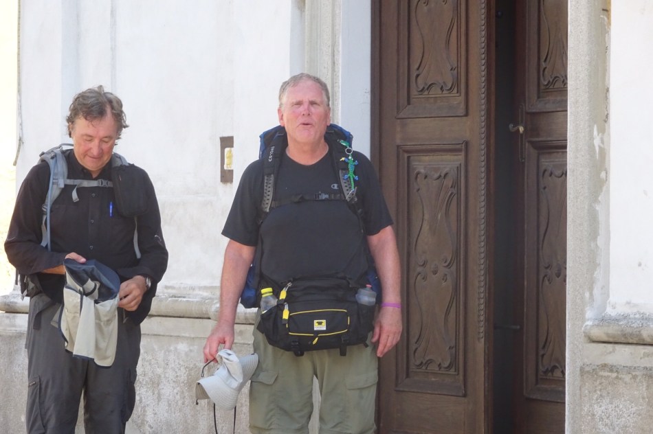 Stage 2 was hot hot hot but we caught up with Fr D which was nice because he brings a sense of pilgrimage to the walk. In Nicorvo we stopped in the church, one of the few which are open, and had a few minutes spiritual refreshment. I signed the pilgrim book and stamped my credentials.