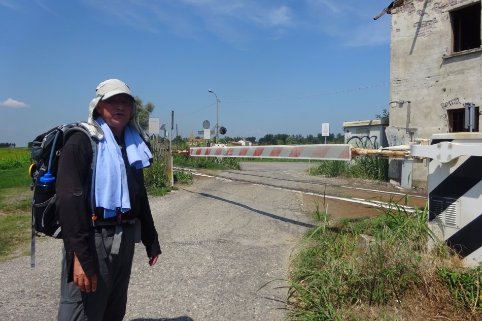 Waiting for the train to cross the Via Francigena